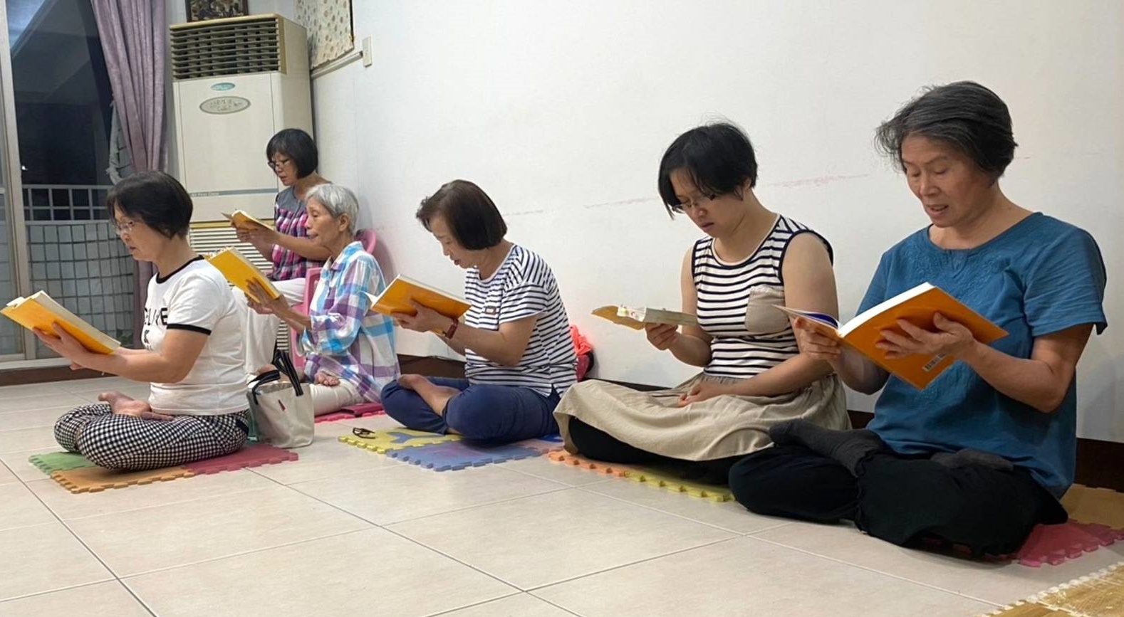 ![]() 圖:意晴(右二)和大家一起集體學法。 |