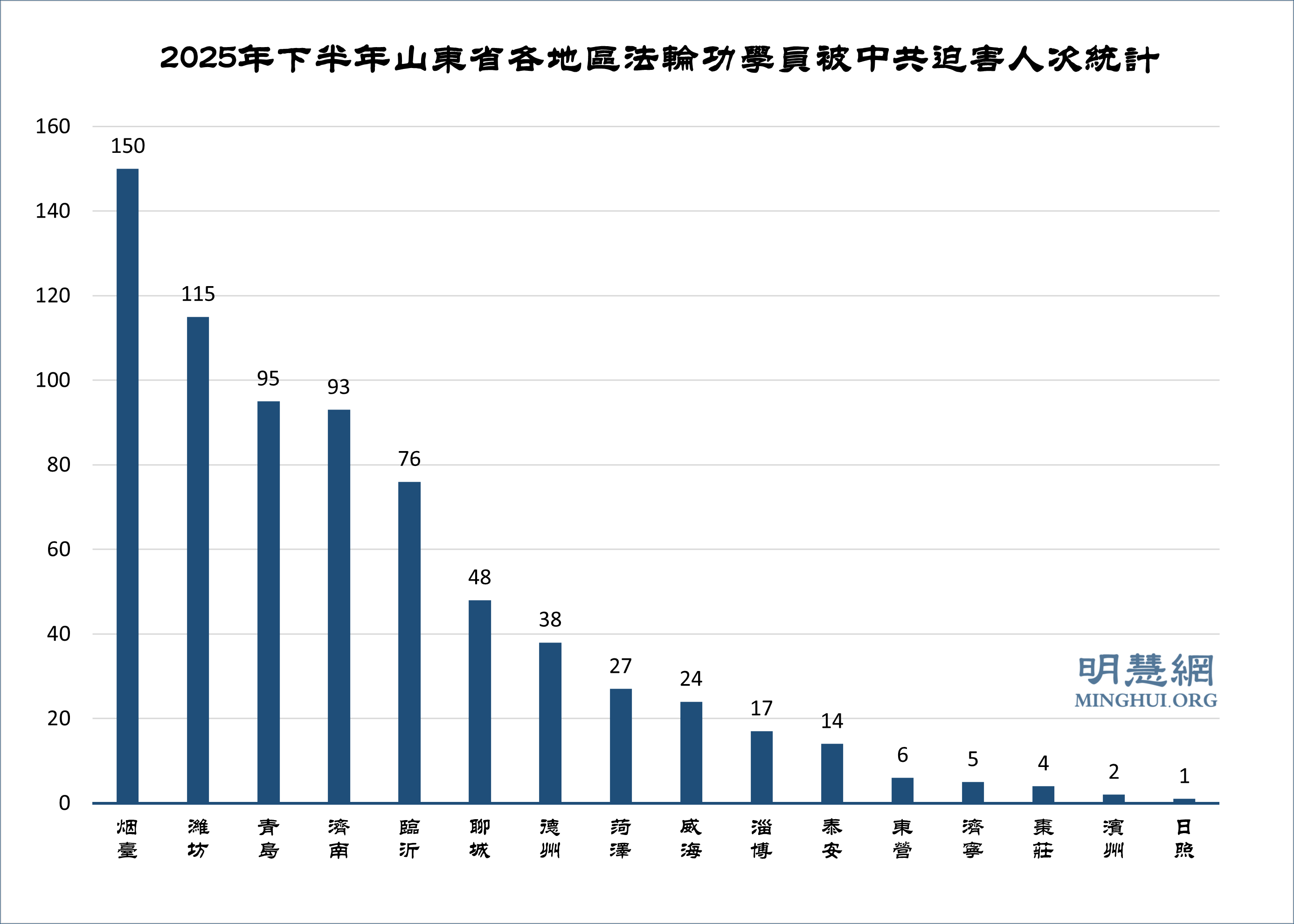 ![]() 圖2:2025年下半年山東省各地區法輪功學員被中共迫害人次統計 |