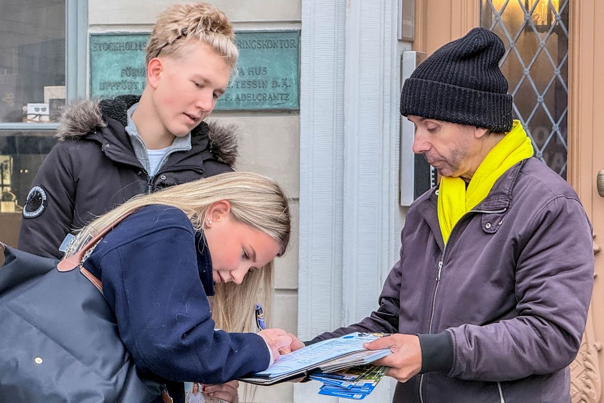 二零二五年十二月份每個週五和週六下午,法輪功學員分別在斯德哥爾摩最熱鬧的皇宮旁的錢幣廣場、著名的斯德哥爾摩音樂廳旁舉辦了法輪功功法演示、講真相和徵簽活動。他們希望借助這個特殊的時刻,向更多人揭露中共對大陸法輪功學員的迫害和企圖延伸至海外跨國鎮壓的罪行。