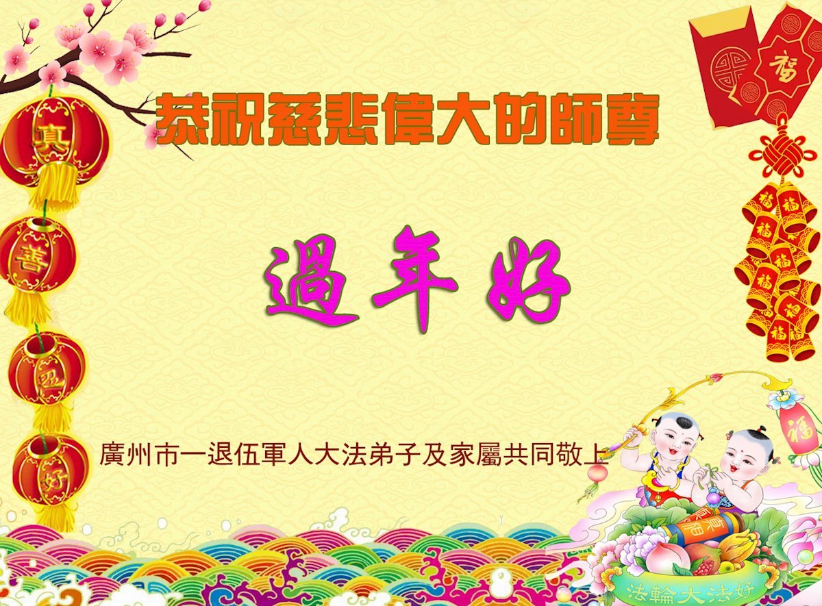 廣東省廣州市一退伍軍人大法弟子及其家屬敬祝慈悲偉大的師尊過年好!