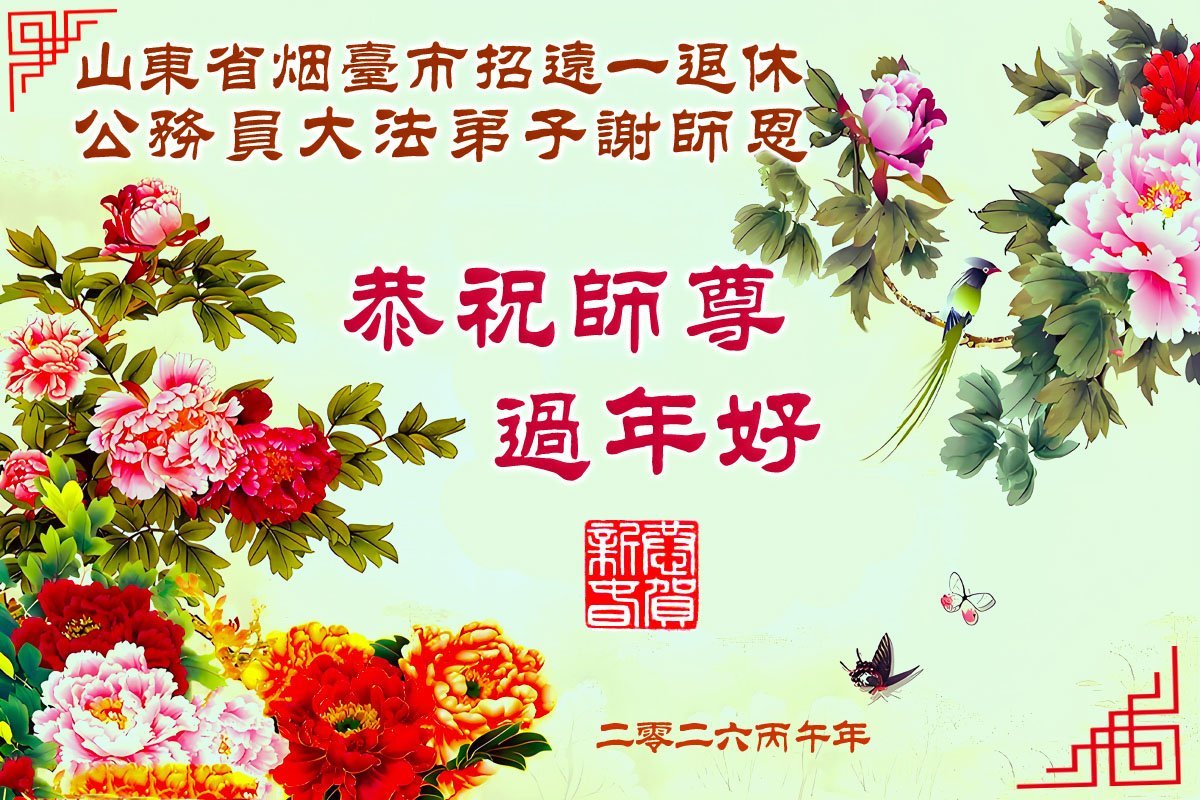 山東省煙台市招遠市一退休公務員大法弟子恭祝師尊過年好!