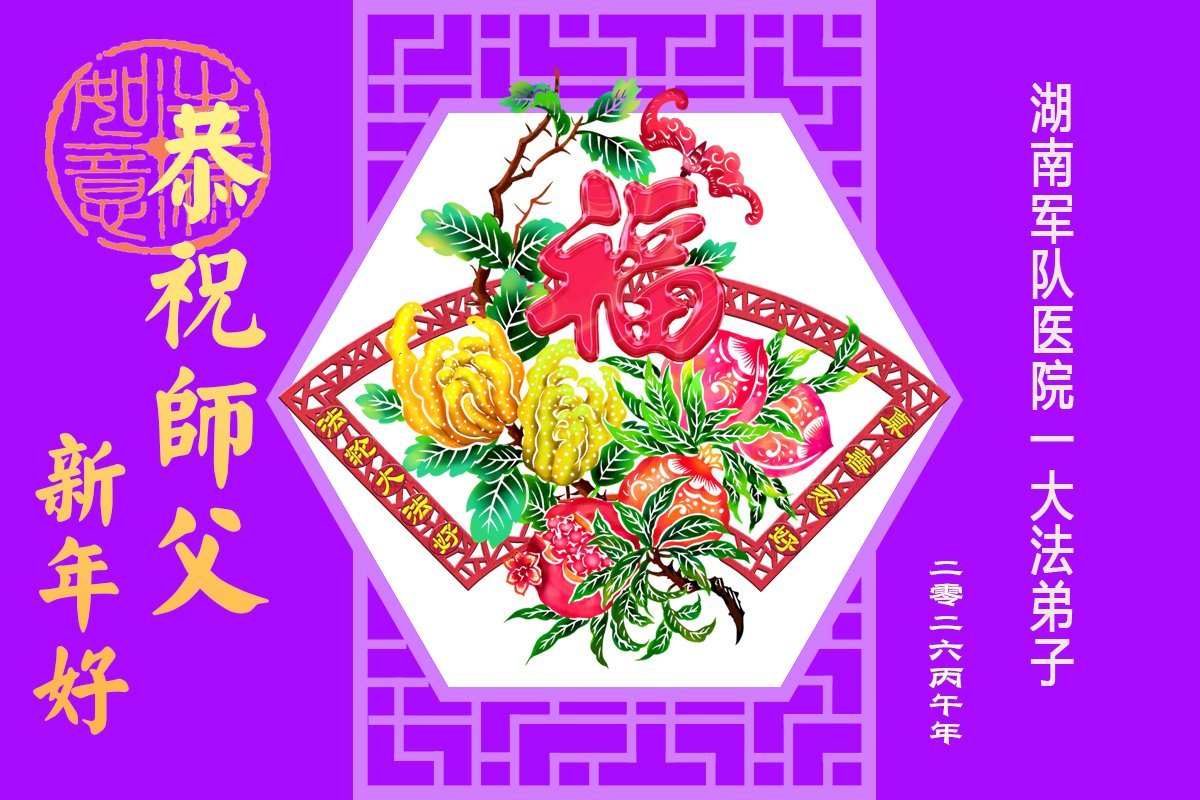 湖南軍隊醫院一大法弟子叩拜、恭祝慈悲偉大的師尊新年快樂!