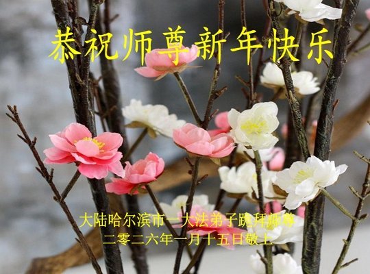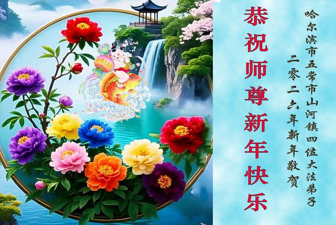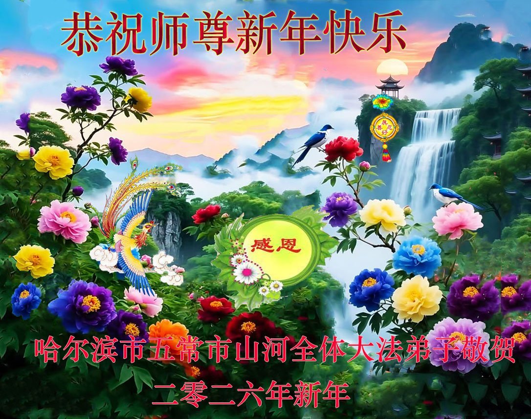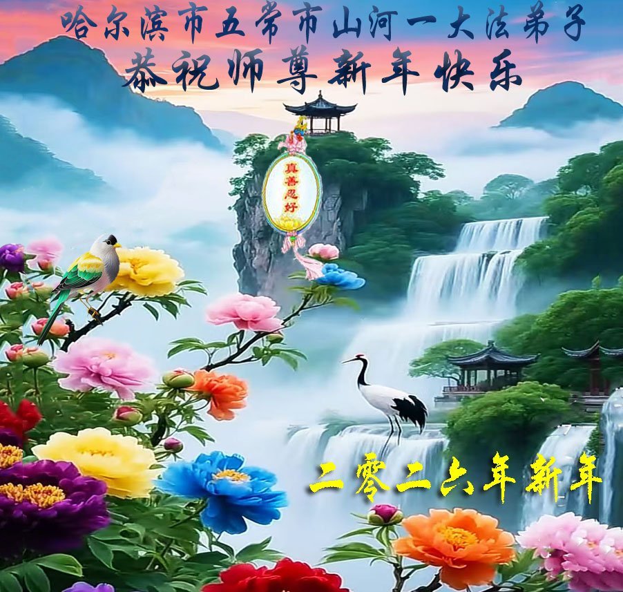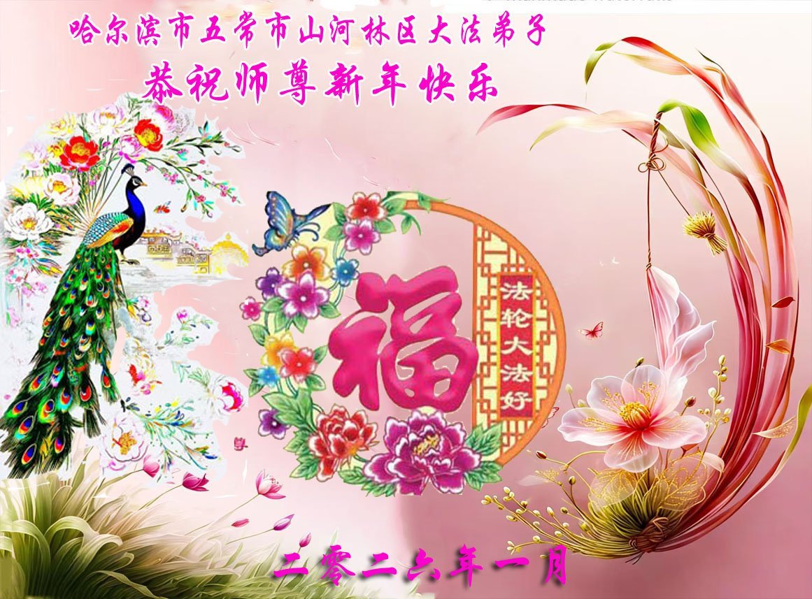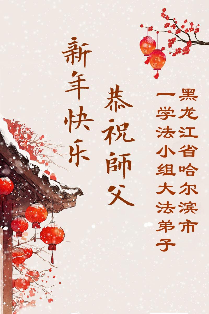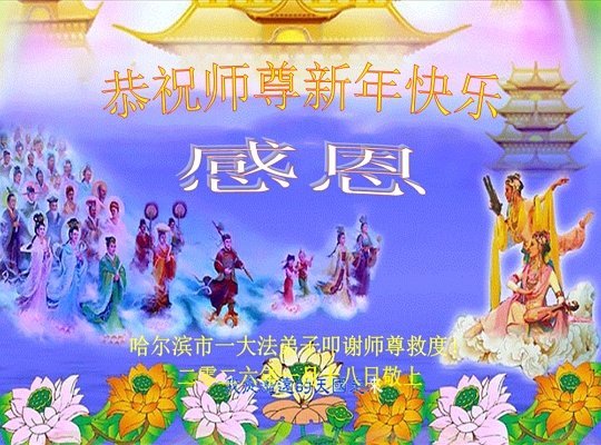 弟子恭祝師尊新年快樂!叩謝師尊慈悲救度之恩!弟子今後一定多學法,用大法的標準要求自己,修出為他的心,和同修配合好,做好三件事,少留遺憾,隨師返家園。
