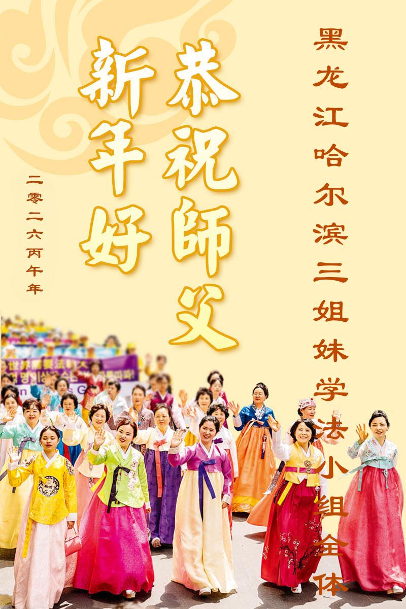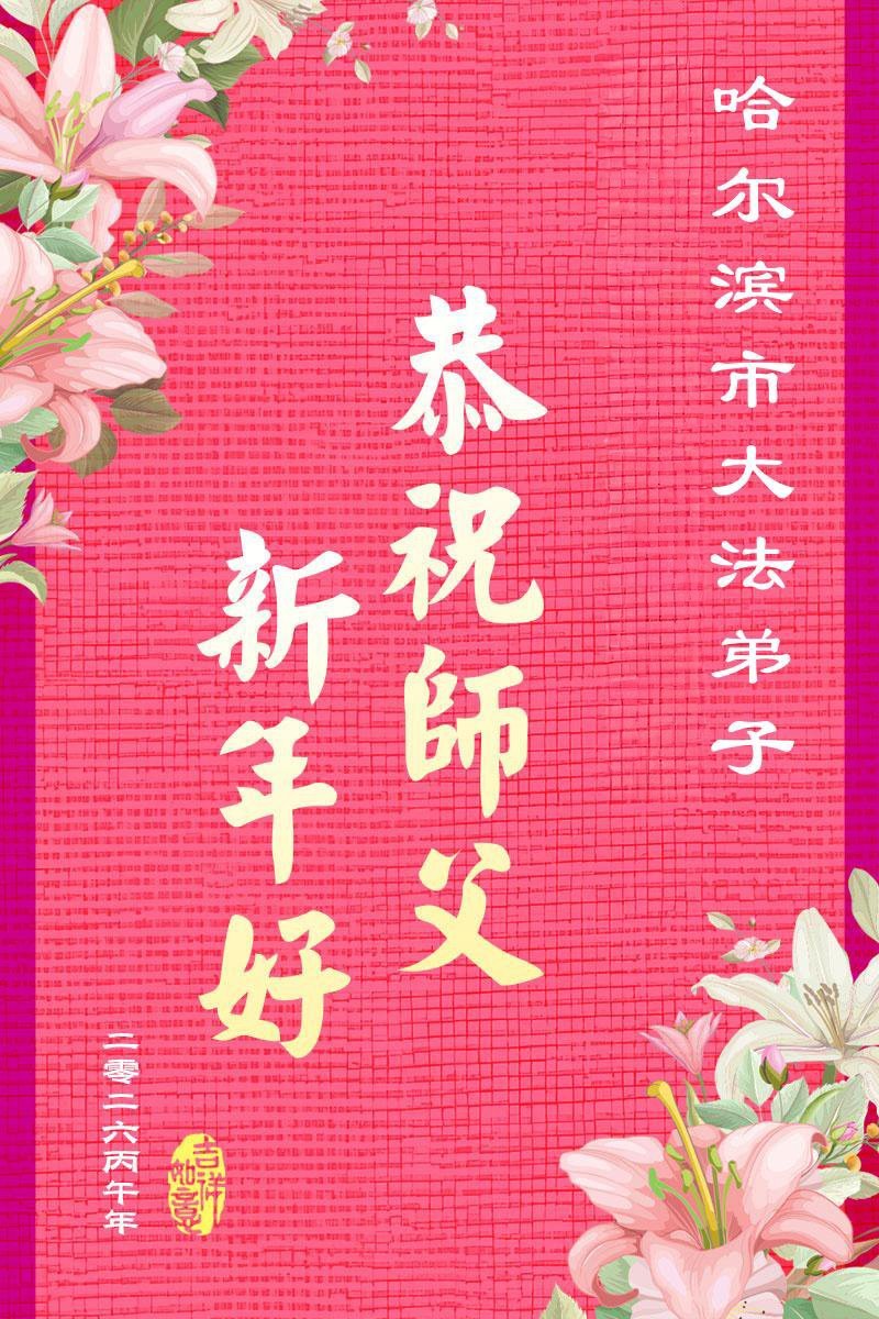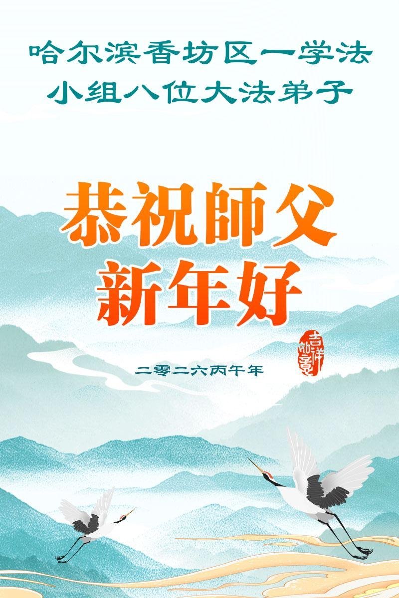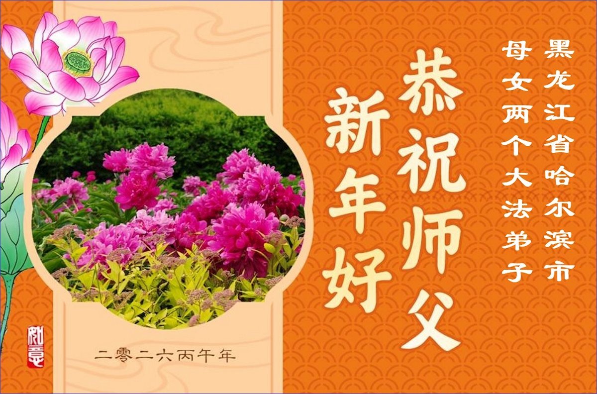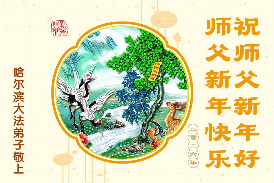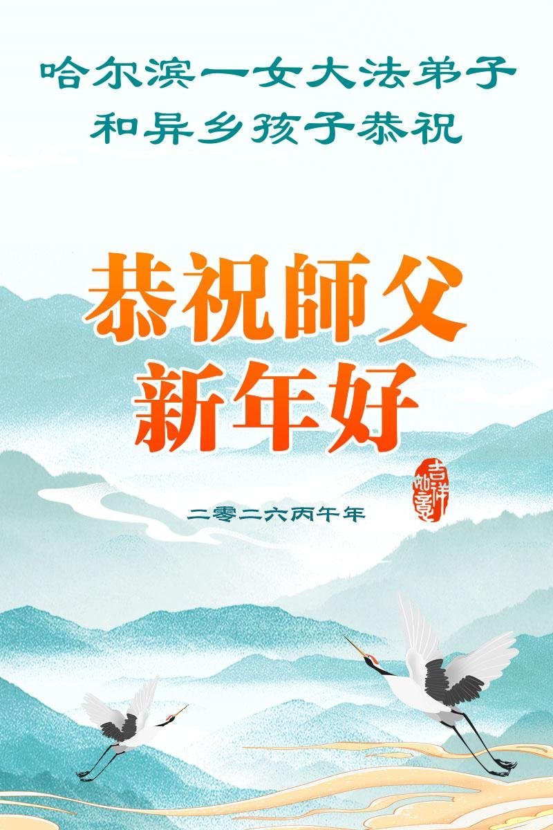 弟子恭祝師尊新年快樂!叩謝師尊慈悲救度之恩!弟子今後一定多學法,用大法的標準要求自己,修出為他的心,和同修配合好,做好三件事,少留遺憾,隨師返家園。