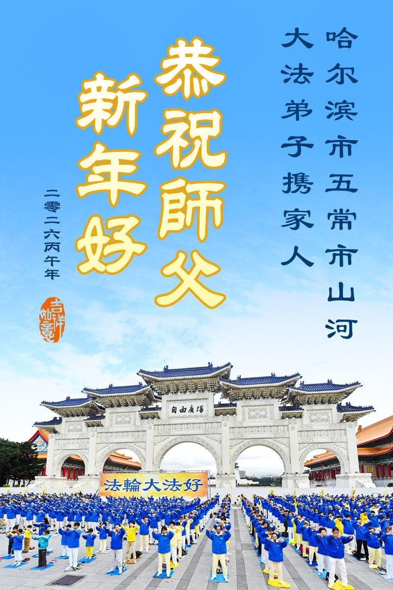 哈爾濱市一大法弟子攜全家敬上