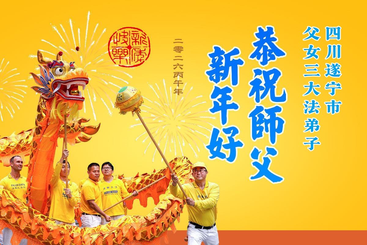 四川省遂寧市一夫妻兩大法弟子攜全家祖孫三代敬上