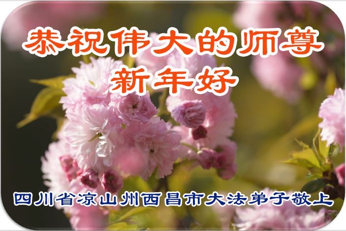 師父您辛苦了!請接受弟子們虔誠且發自肺腑的祝願:惟願師父在新的一年裏,少為眾生承受不該承受的苦難!願世人明白師父您救度眾生的良苦用心!願我們在新的一年裏都能勇猛精進,少走彎路,精進不怠!用行動來回報師尊慈悲苦度弟子的感恩之心!在此,恭祝師尊新年快樂!法輪大法好!真、善、忍好!