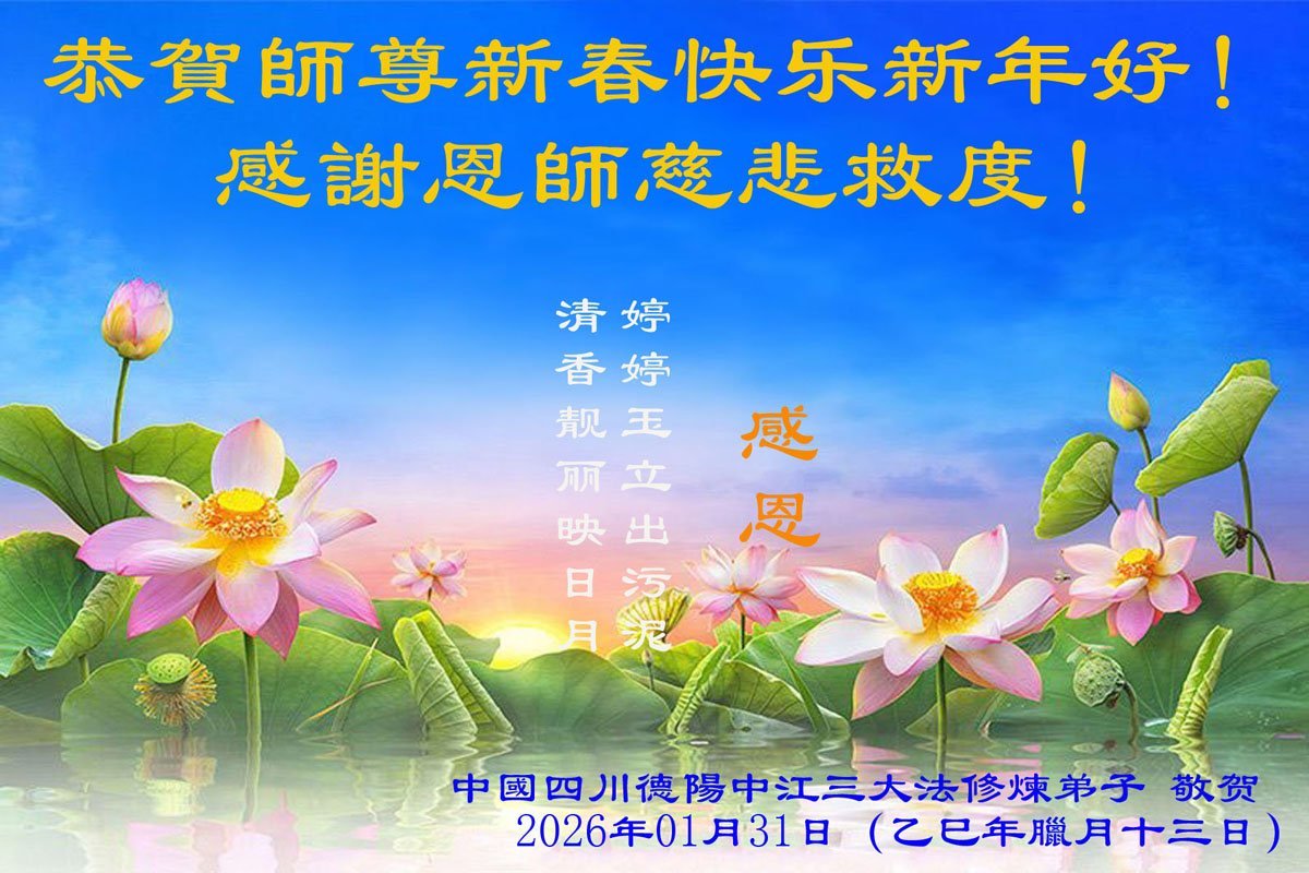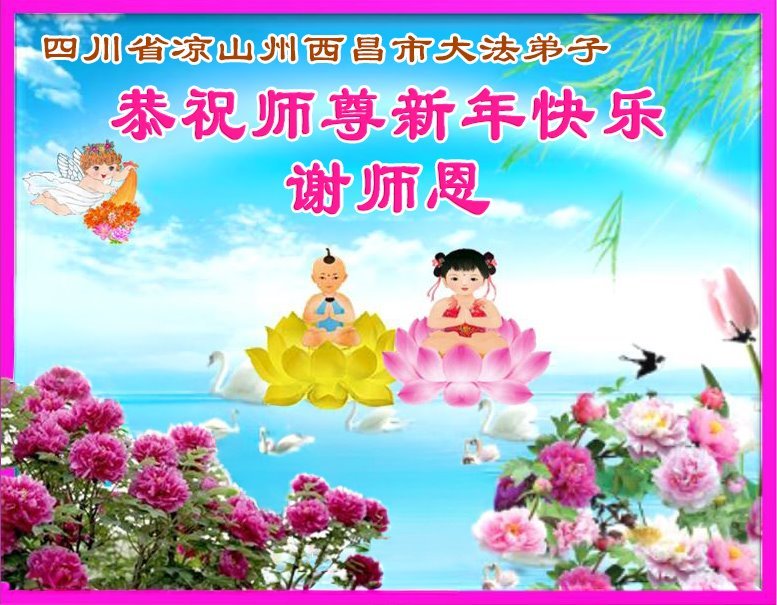 感謝師父慈悲救度!在新的一年裏,弟子們一定學好法,做好三件事,不辜負師父的厚望!