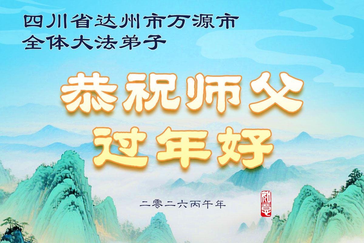 轉眼又一年,在這神州辭舊,華夏迎春的過年喜慶日。四川省達州市達川區、通川區全體大法弟子給慈悲偉大的師尊拜年了:恭祝慈悲偉大的師尊新年好!