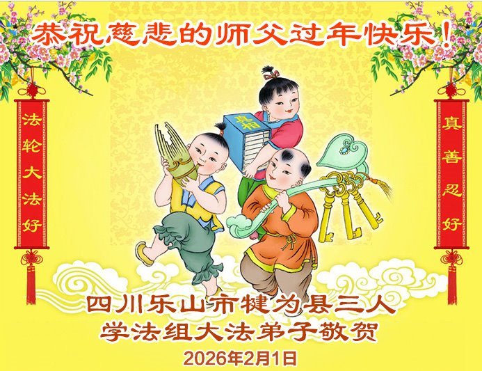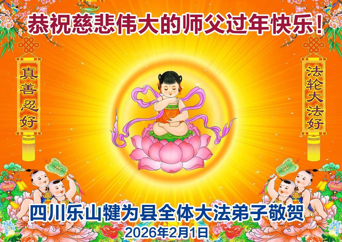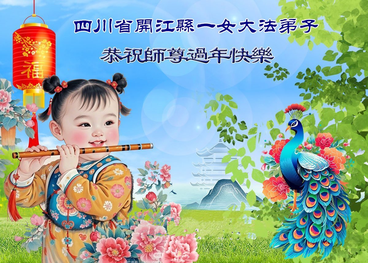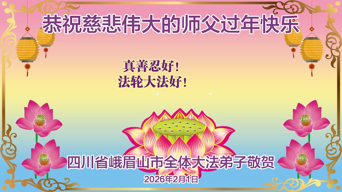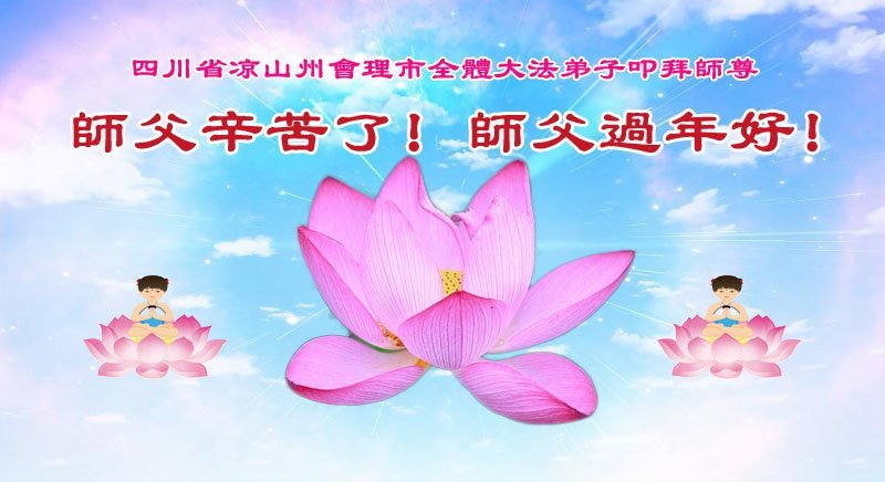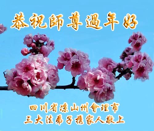 四川大法弟子們給師父拜年。慈悲偉大的師父您好!師父辛苦了!過年即將到來,弟子們以最誠摯的感恩之心給師父拜年,恭祝師父過年好!師父過年快樂!
