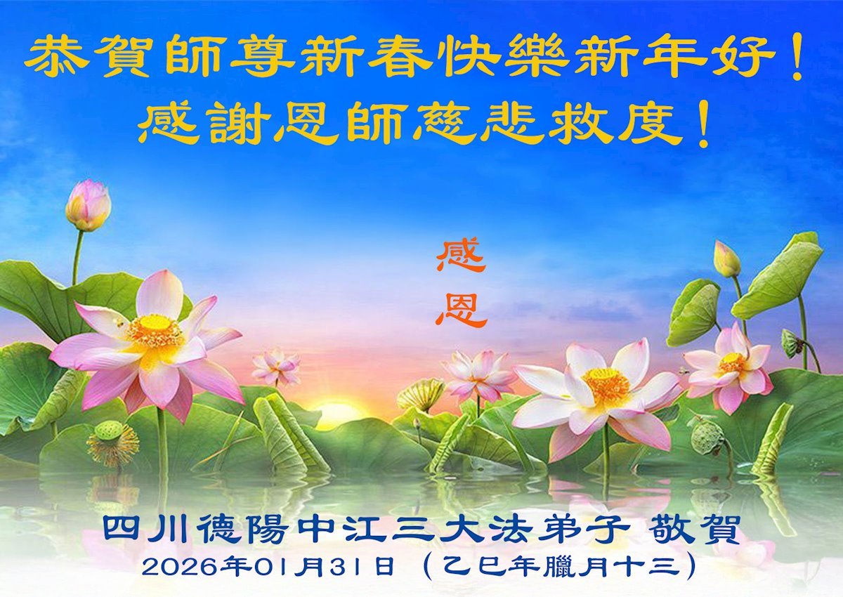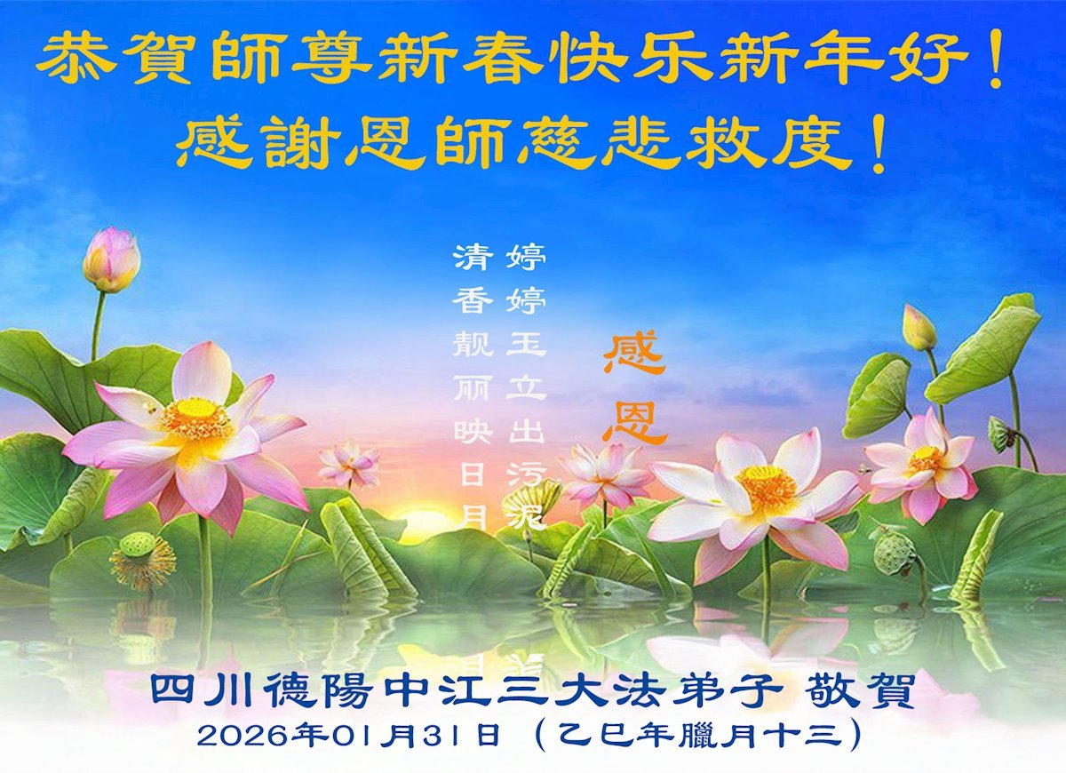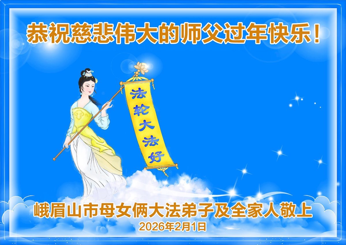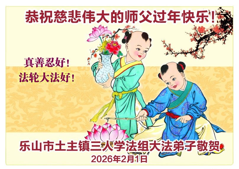四川大法弟子們給師父拜年。慈悲偉大的師父您好!師父辛苦了!過年即將到來,弟子們以最誠摯的感恩之心給師父拜年,恭祝師父過年好!師父過年快樂!