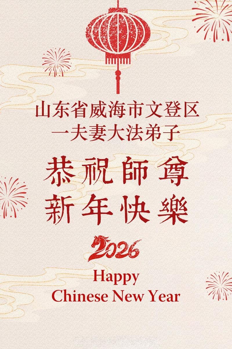 師尊您辛苦了,弟子感恩師父對我們全家都慈悲保護!新年來臨之際,我代表獄中的妻子同修和所有家人祝願慈悲偉大的師父新年快樂!請師父放心,無論環境如何變化,我們都會修好自己,跟師父回家!