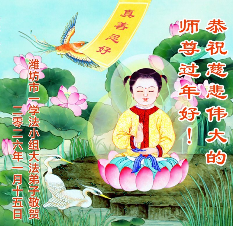 在新的一年到來之際,我們學法小組大法弟子遙祝師父新年好!師父您辛苦了!弟子們一定努力做好三件事,走好助師正法的修煉路,讓師父多一份欣慰,少一份操勞。謝謝師父的慈悲苦度,叩拜師父!