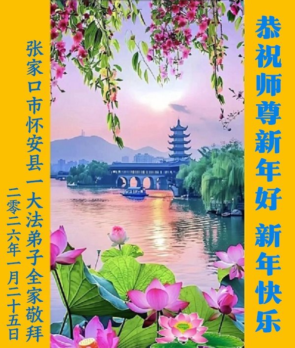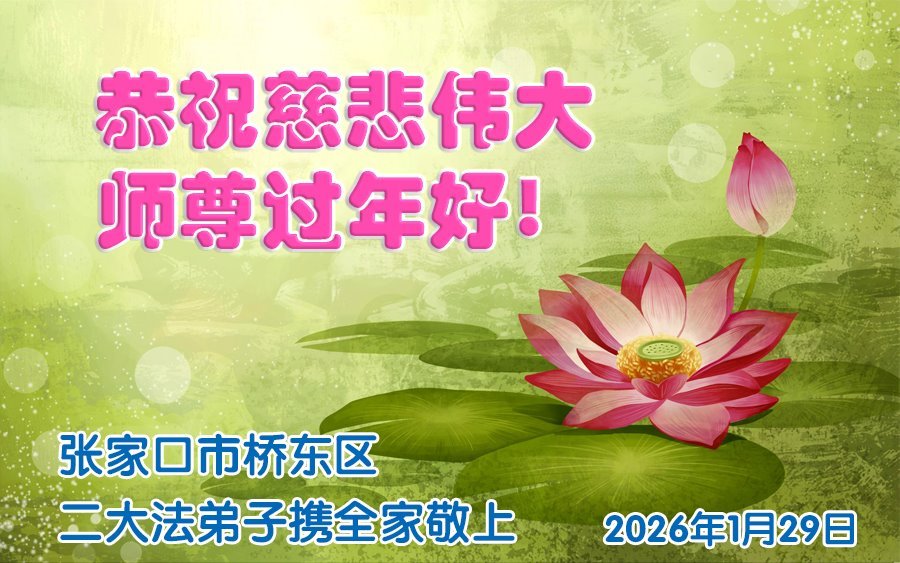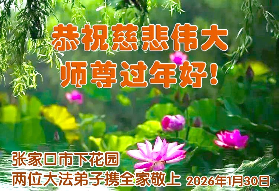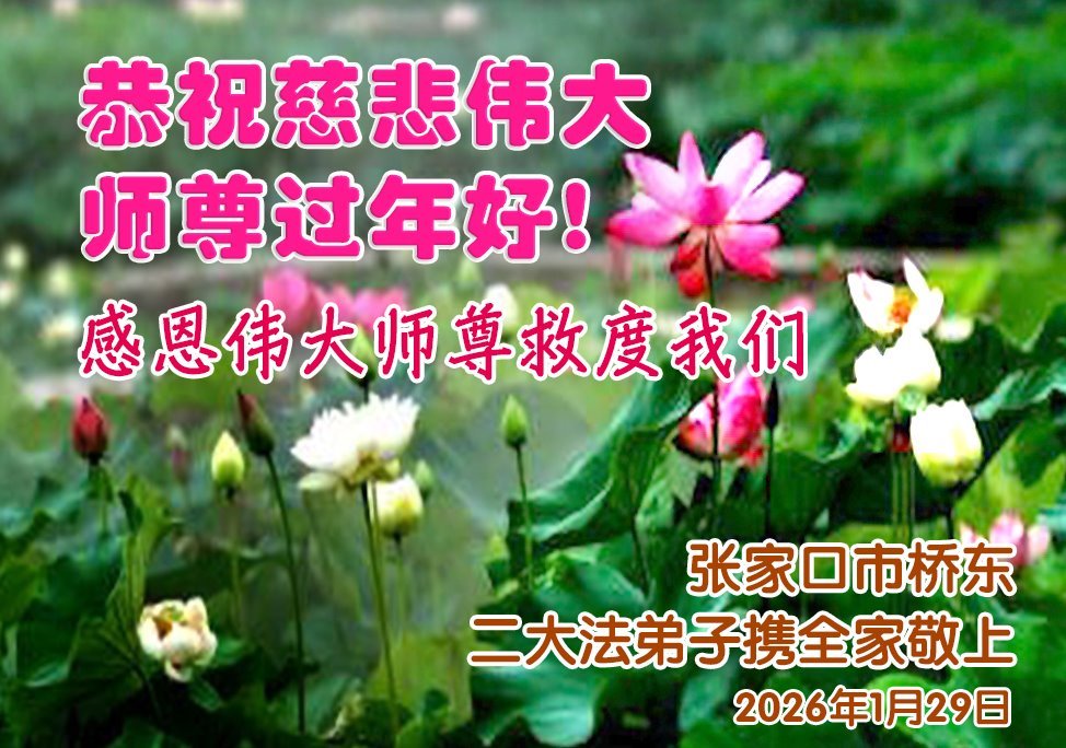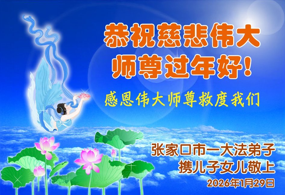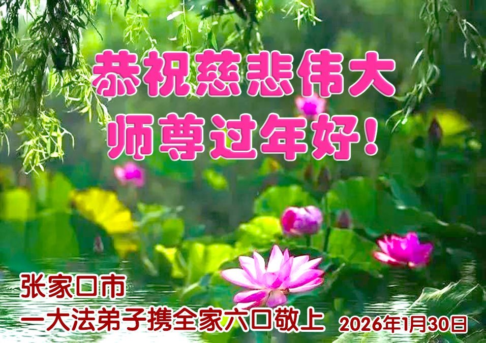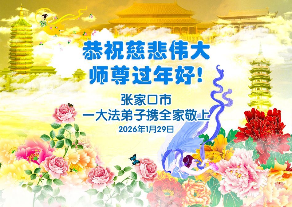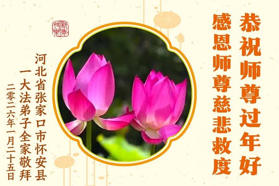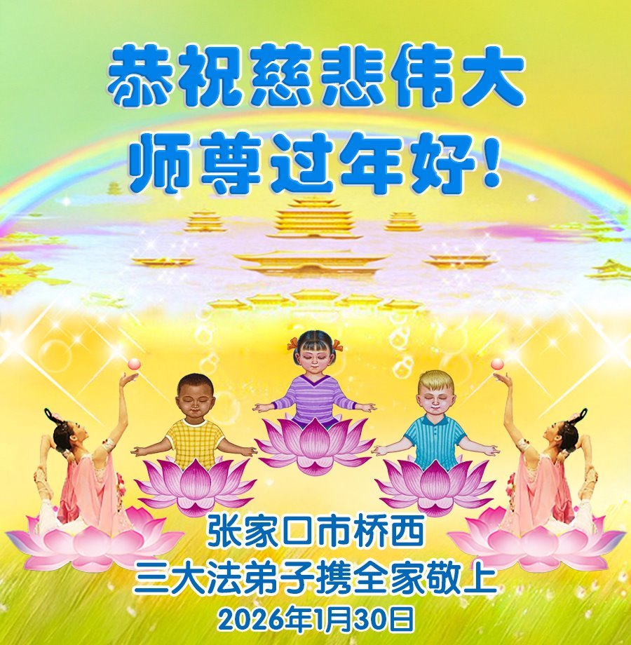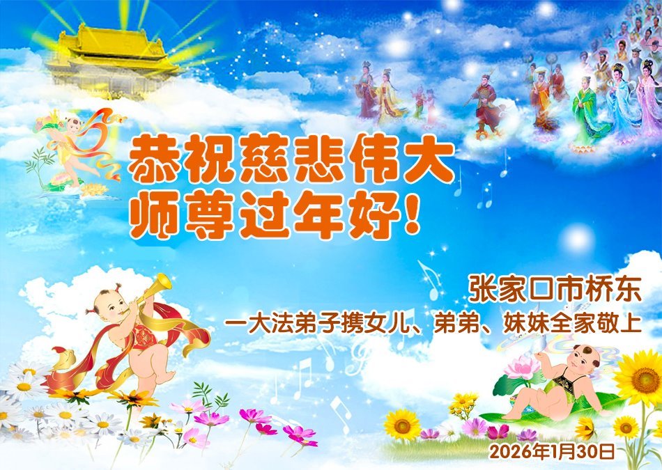恭祝慈悲偉大的師尊過年好!感恩師尊救度我們,謝謝師尊給我安排好的修煉環境,全家都支持大法,使我能夠更好的兌現史前大願,我代表全家再次拜謝偉大師尊!
