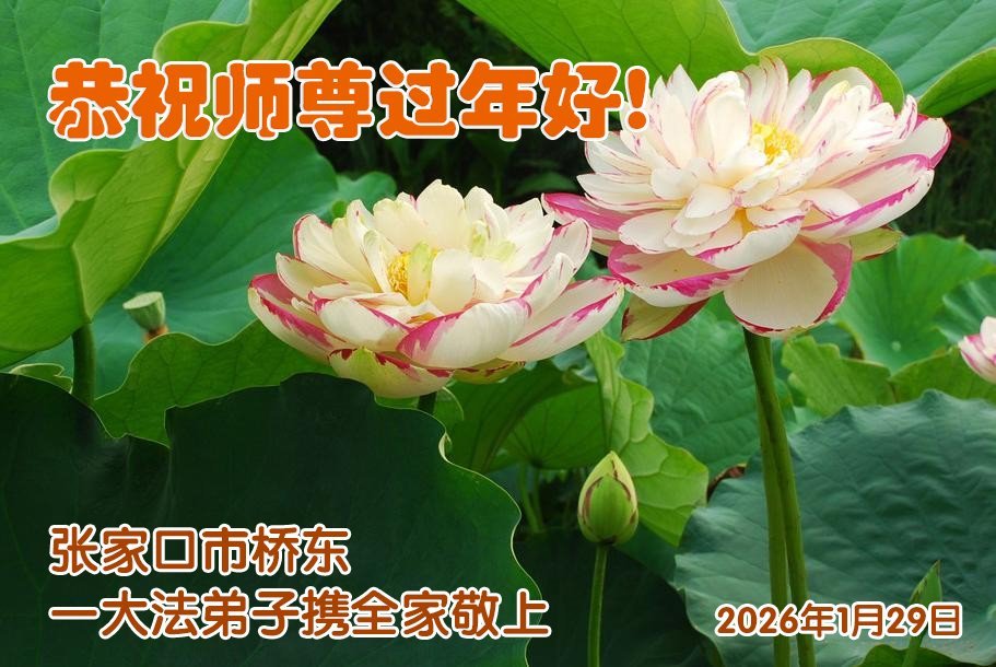 恭祝慈悲偉大的師尊過年好!感謝師尊洪恩浩蕩,感恩偉大師尊法力無邊,感恩師尊慈悲保護!弟子每一刻每一步的昇華和提高都浸透著師尊的苦心安排和心血。今後的日子,弟子一定要更加珍惜,學好法,紮紮實實修好自己,做好三件事,抓緊時間救人。