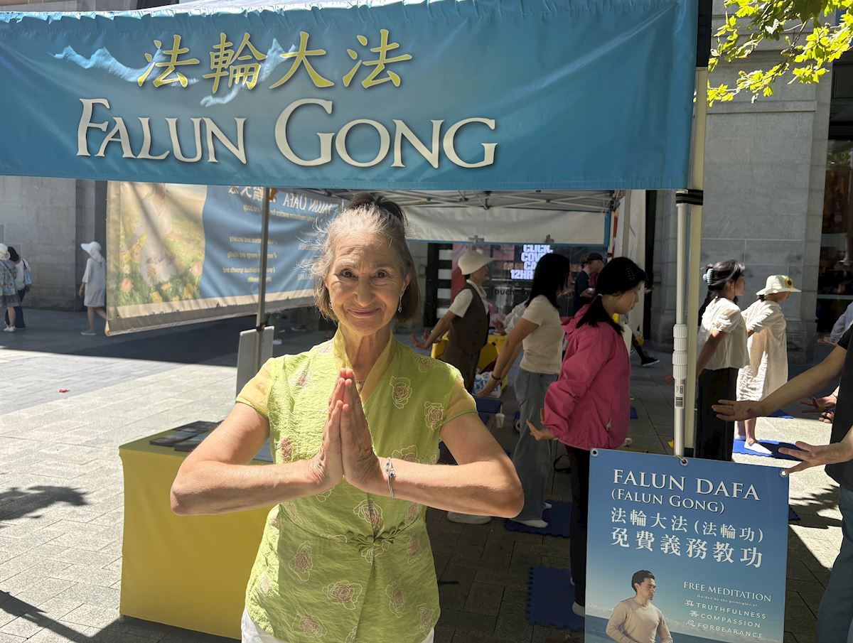 每個週末她都會走向真相點的街頭,遞給人們傳單,做停止迫害的徵簽,曝光邪惡對大法和法輪功學員的迫害。她堅持參與週六當地學員在公園的晨煉和週日在中領館對面的晨煉。