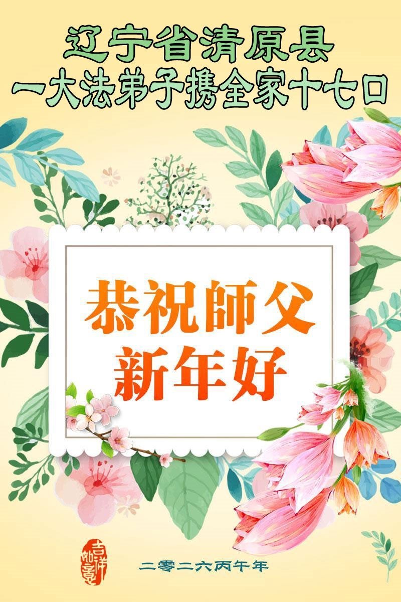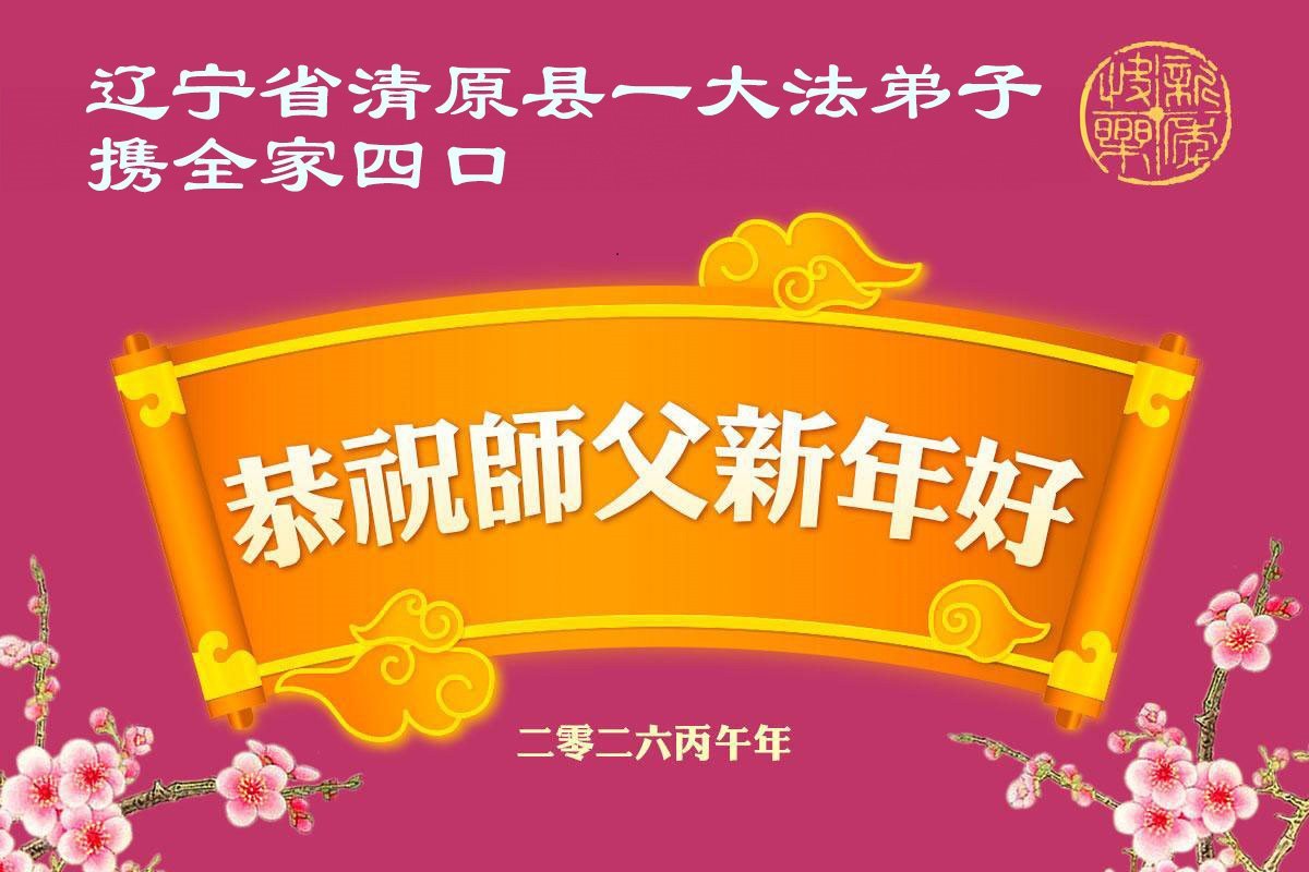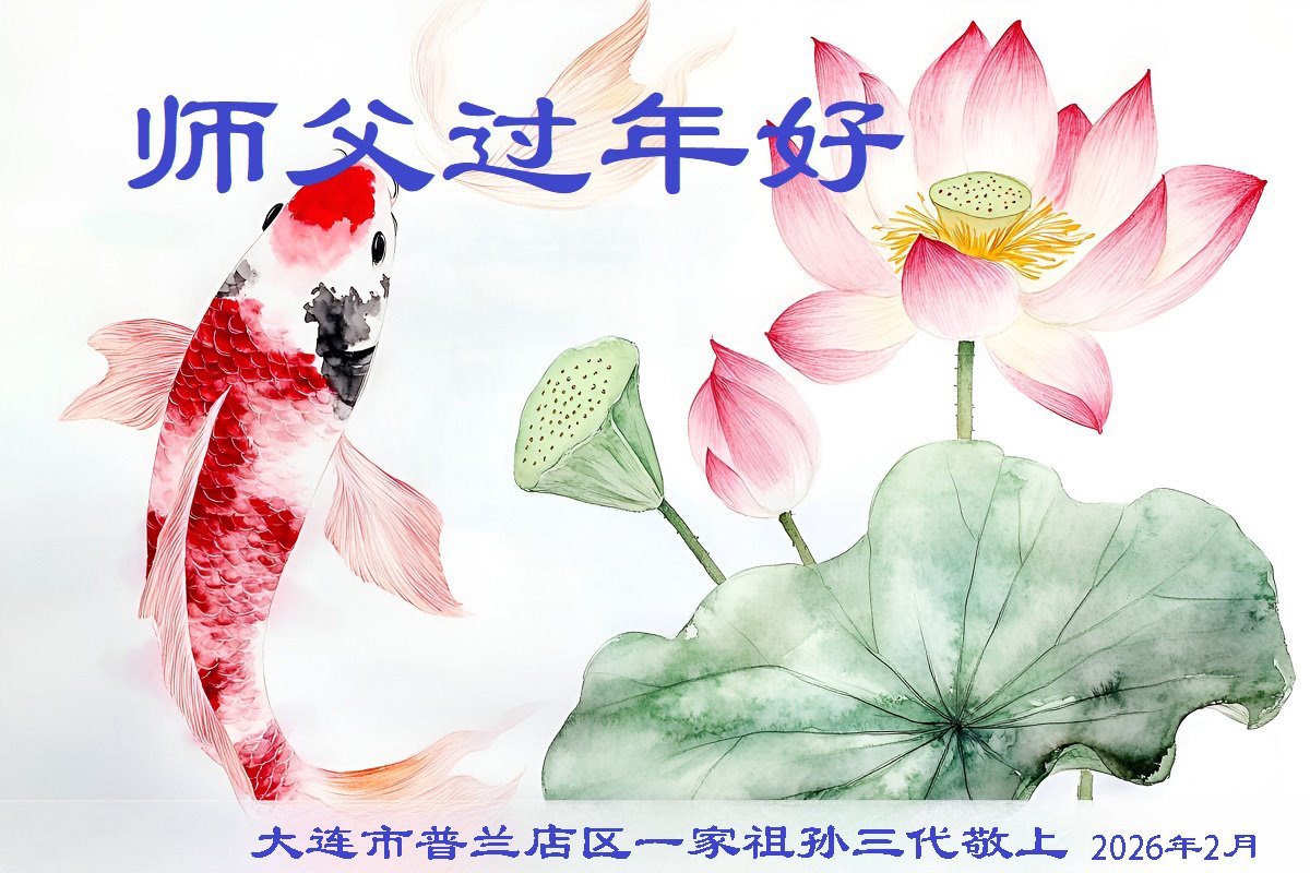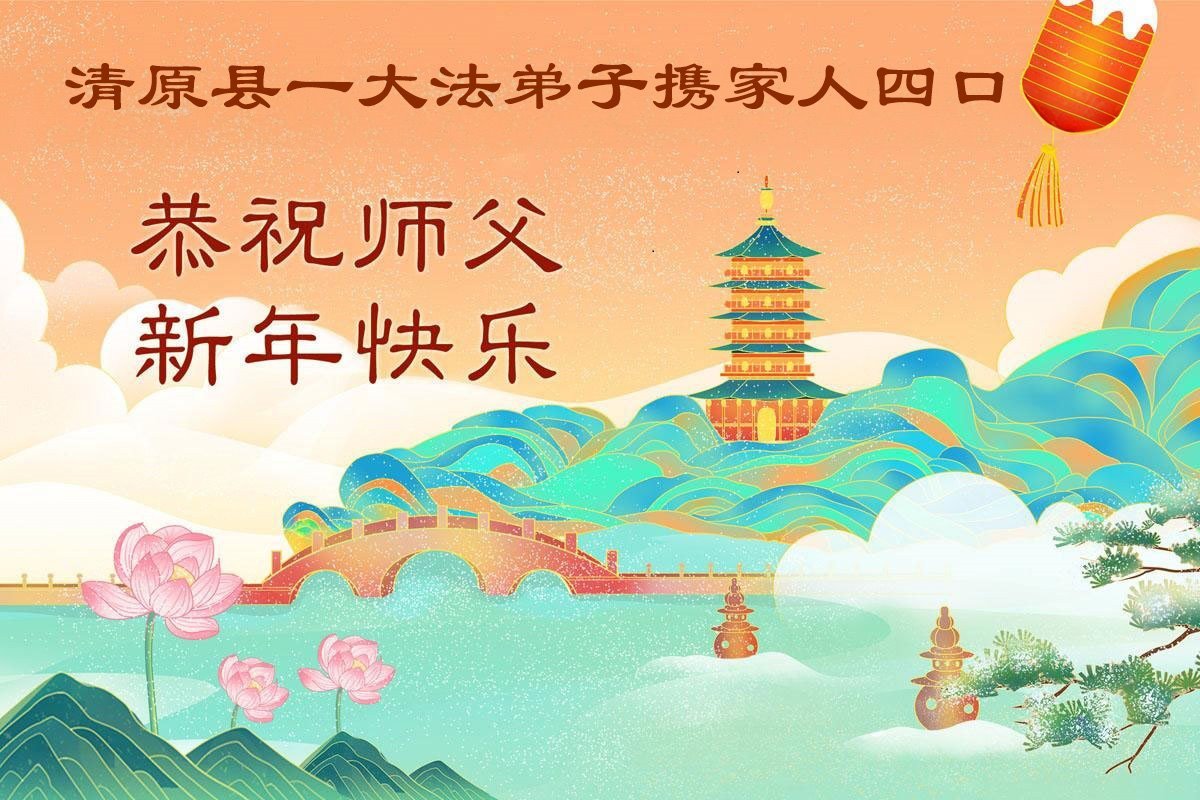 在新年到來之際,我們全家恭祝師尊新年快樂!您為我們付出了一切,師父的恩情我們無法用人的語言表達,弟子唯有學好法,精進實修,放下常人心,向內找,做好大法弟子救人的事,讓師父少一份操勞,多一份欣慰,不辜負師父的厚望,謝謝師父!