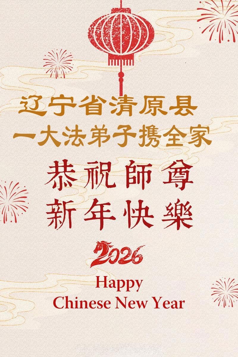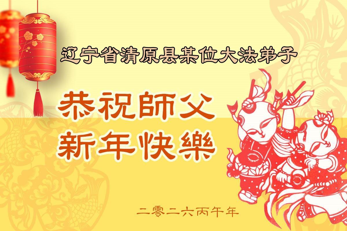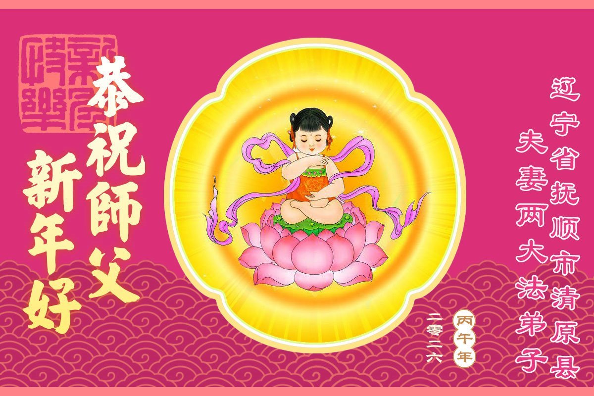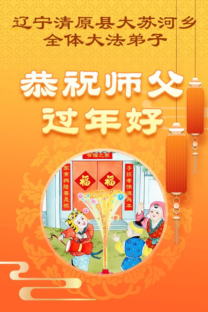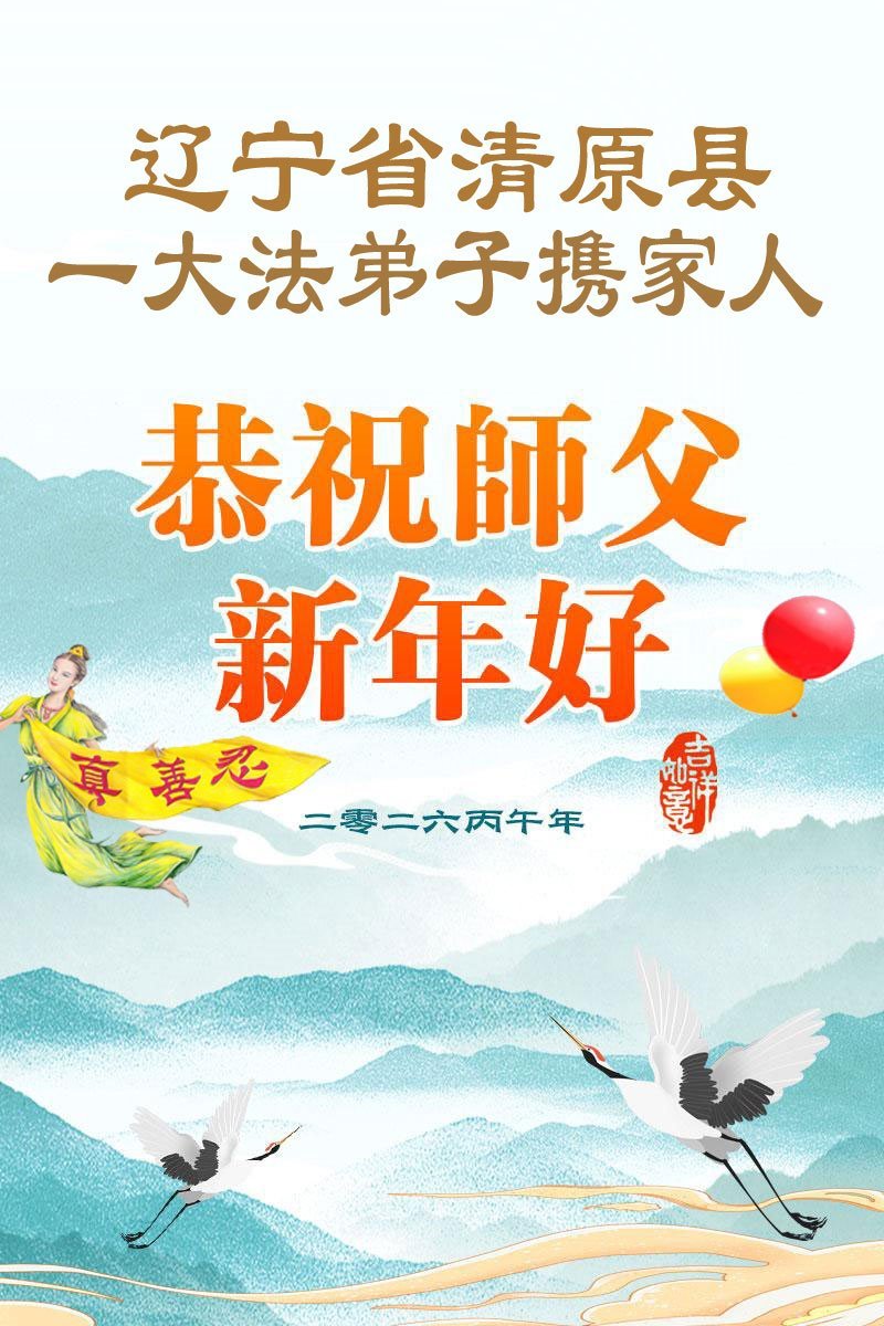 在新年到來之際,我們全家恭祝師尊新年快樂!您為我們付出了一切,師父的恩情我們無法用人的語言表達,弟子唯有學好法,精進實修,放下常人心,向內找,做好大法弟子救人的事,讓師父少一份操勞,多一份欣慰,不辜負師父的厚望,謝謝師父!