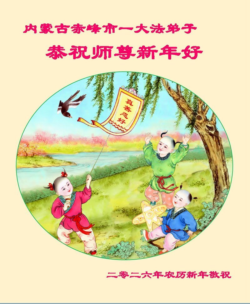 內蒙古赤峰巴林左旗大法弟子攜女兒外孫敬上