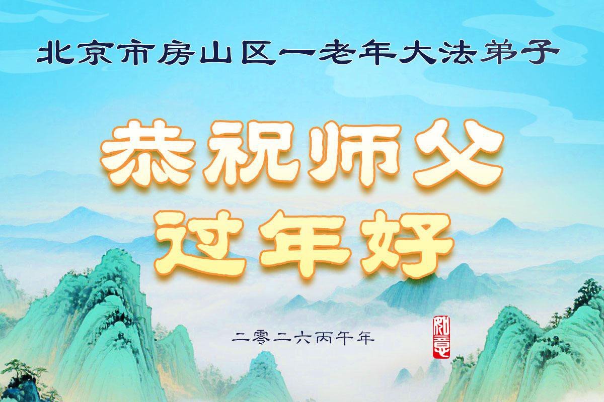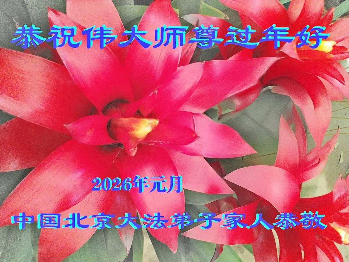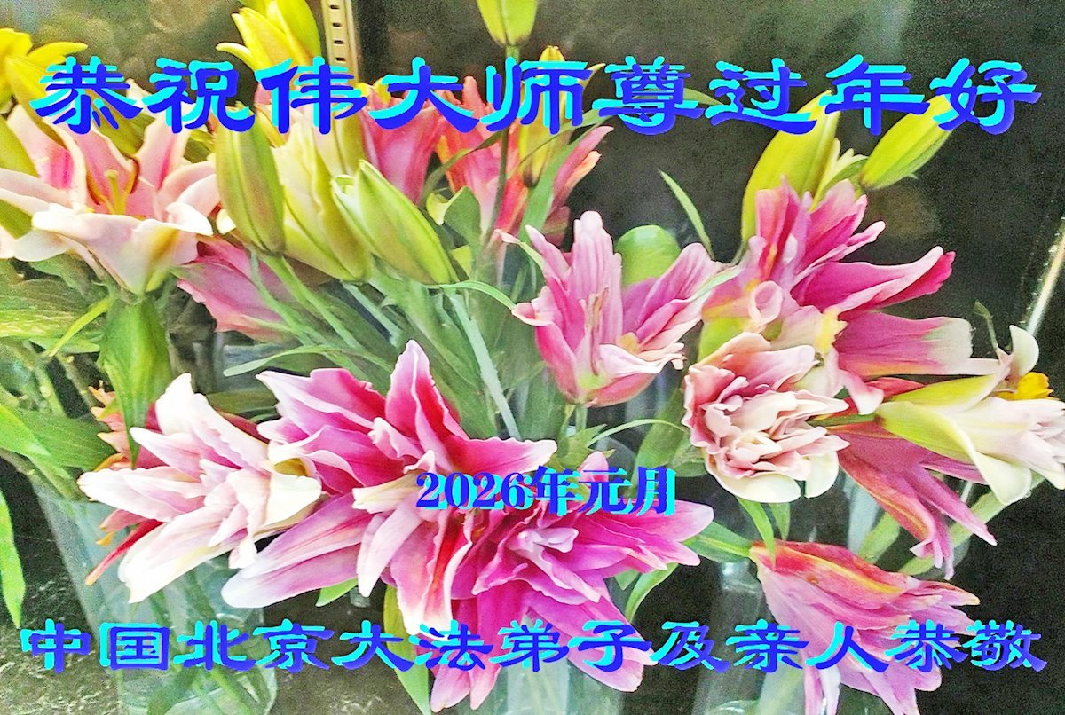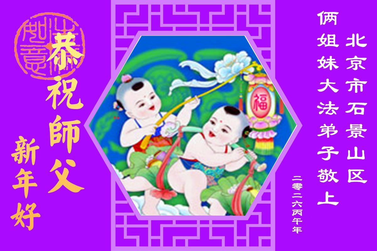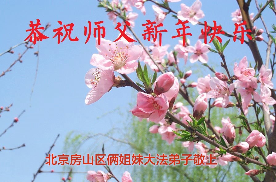 恭祝師尊新年快樂!師尊過年好!我代表我的姐姐和妹妹同修給師尊拜年!師尊辛苦了!我們今後會珍惜師尊延續下來的時間,也會督促姐妹同修共同精進!