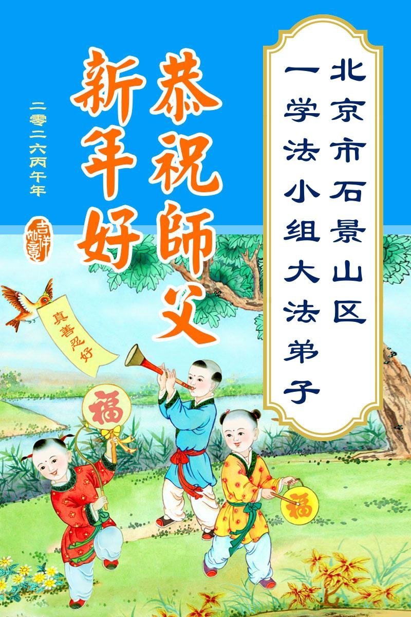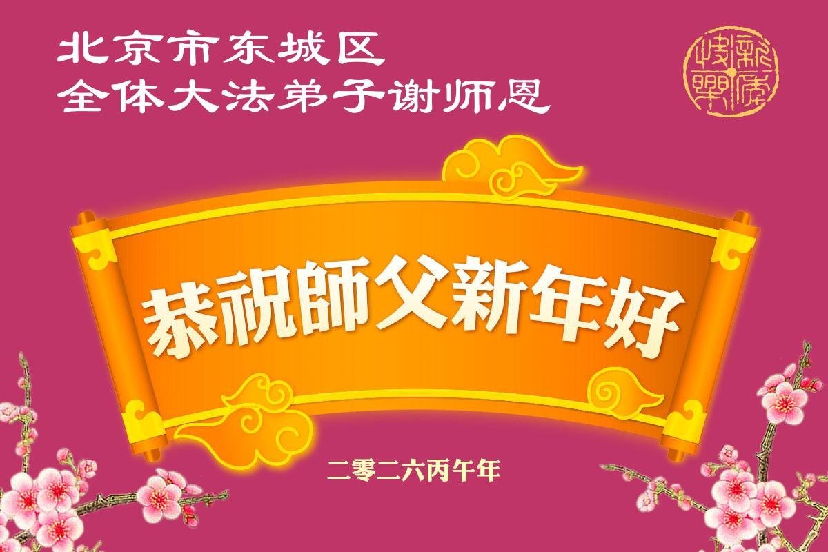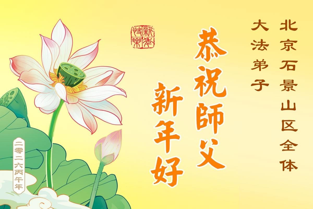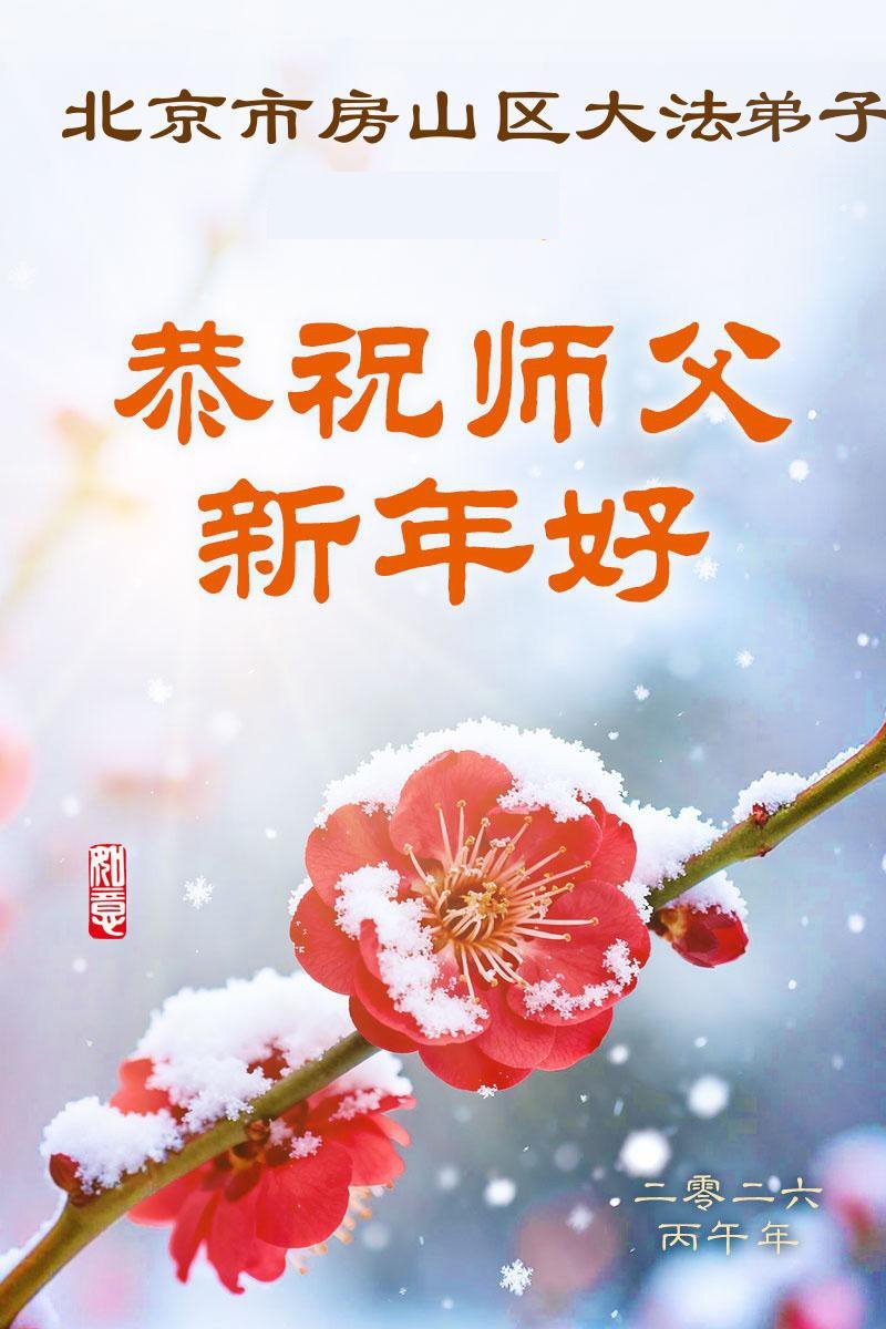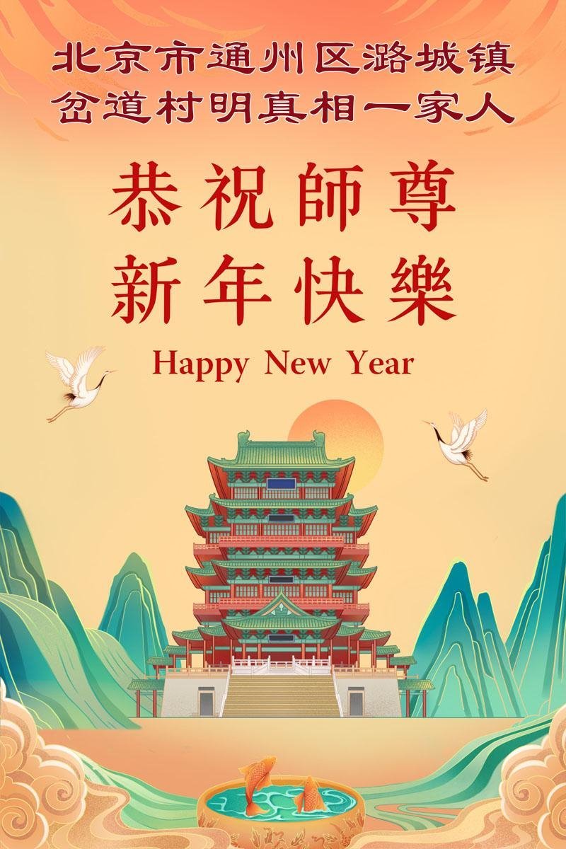 恭祝師尊新年快樂!師尊過年好!我代表我的姐姐和妹妹同修給師尊拜年!師尊辛苦了!我們今後會珍惜師尊延續下來的時間,也會督促姐妹同修共同精進!