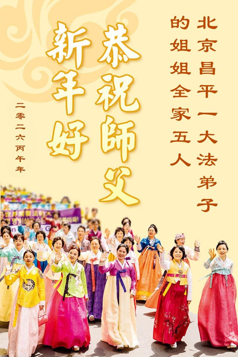 謝謝慈悲偉大的師尊!我們全家十人恭祝師尊過年好!法輪大法好!真善忍好!