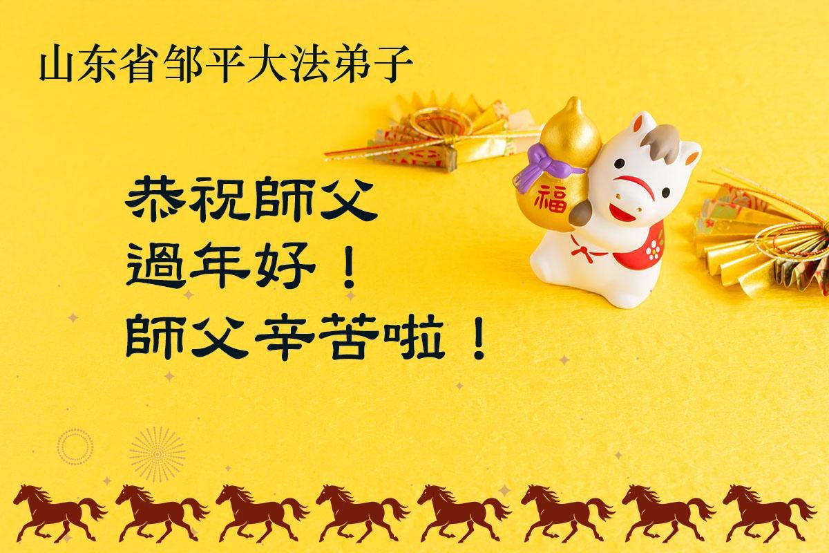 丙午年佳節即將來臨,恭祝師父過年好!師父您辛苦了!師父把宇宙大法傳給弟子。又在弟子修煉過程中時時處處看護著弟子兩人至今。弟子無限感恩師父的慈悲救度!在今後的修煉道路上,我們會努力做到真修、實修,盡力多救人,完成使命,跟師父回家。謝師恩!