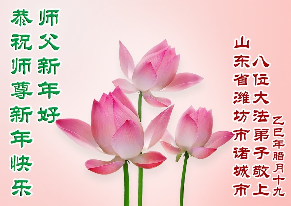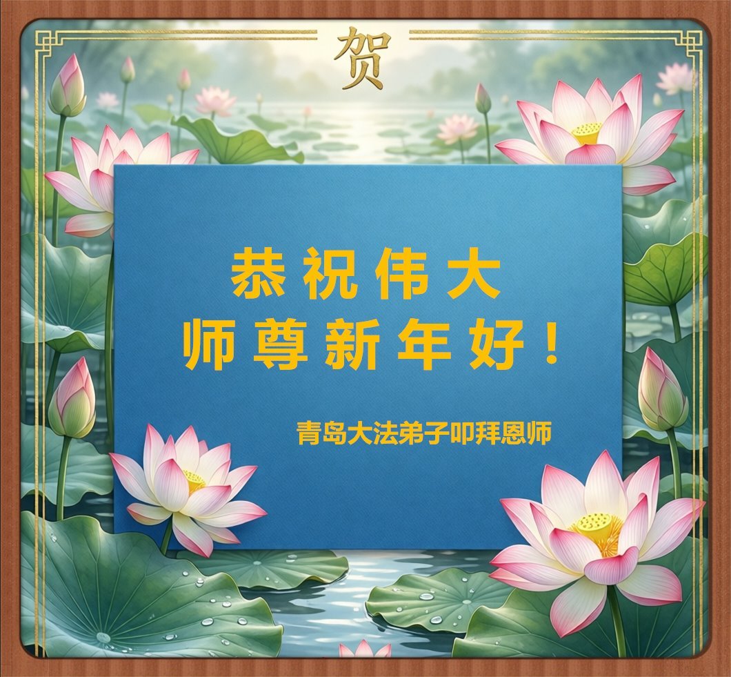恭祝師尊新年快樂!新的一年又來臨了,縱有千言萬語也道不完對師父的感恩!感恩師父的慈悲救度,感恩師父的細心保護,感恩師父的慈悲點悟。弟子們會繼續做好三件事,多學法,發好正念,救度更多的有緣人,以報師恩,謝謝師父!