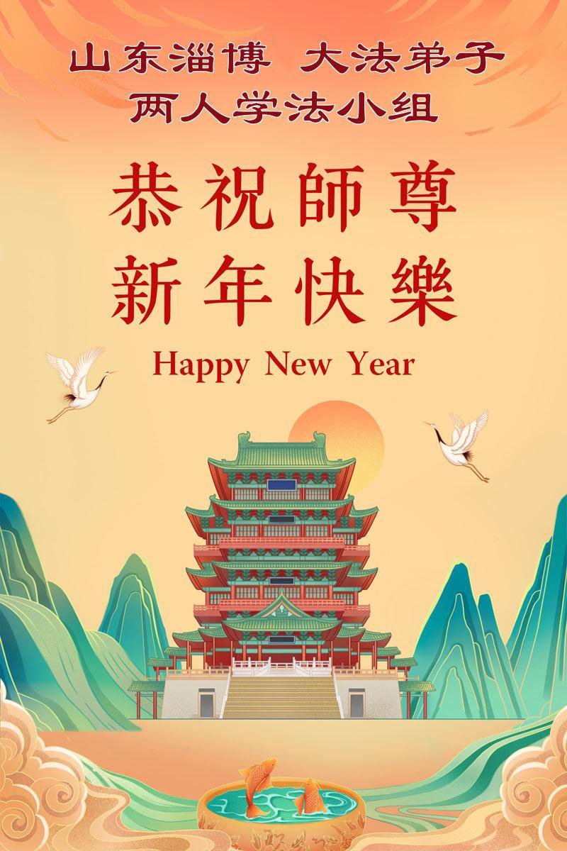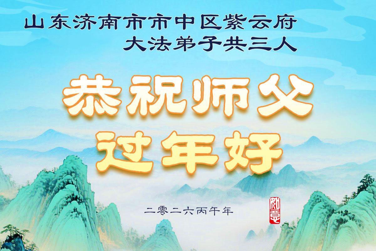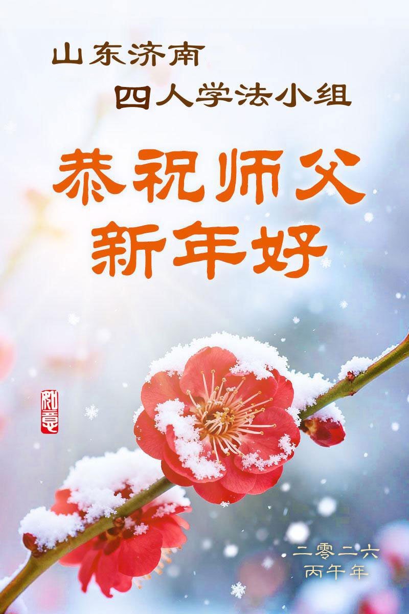 山東濟南歷下區大法弟子恭祝慈悲、偉大的師尊新年好!