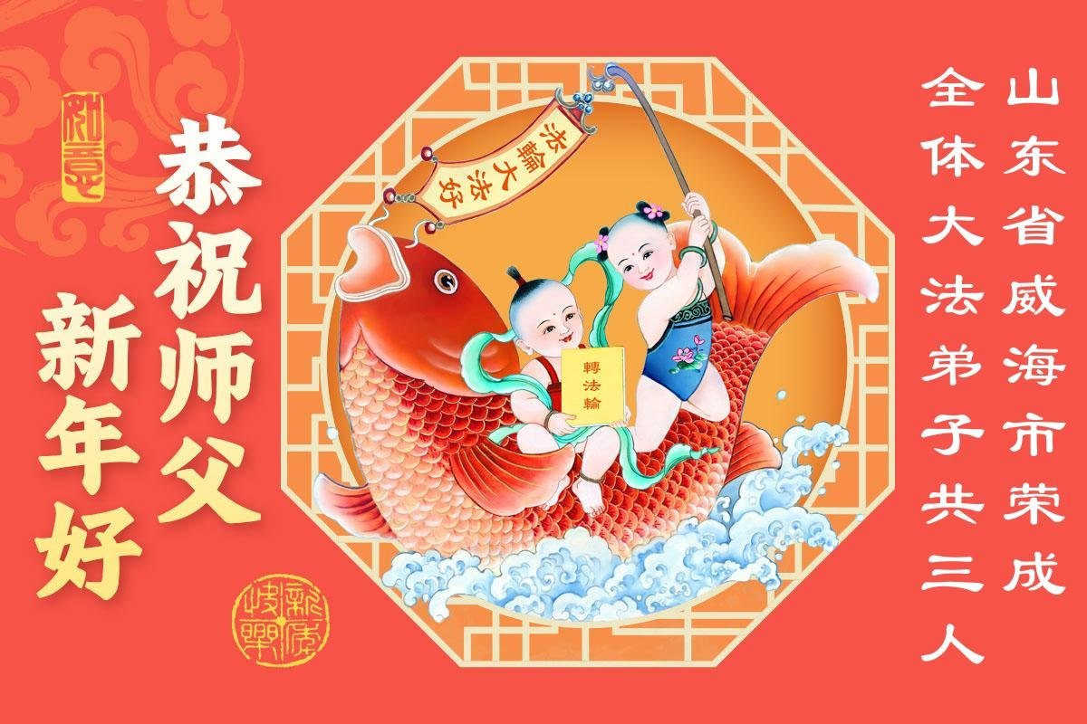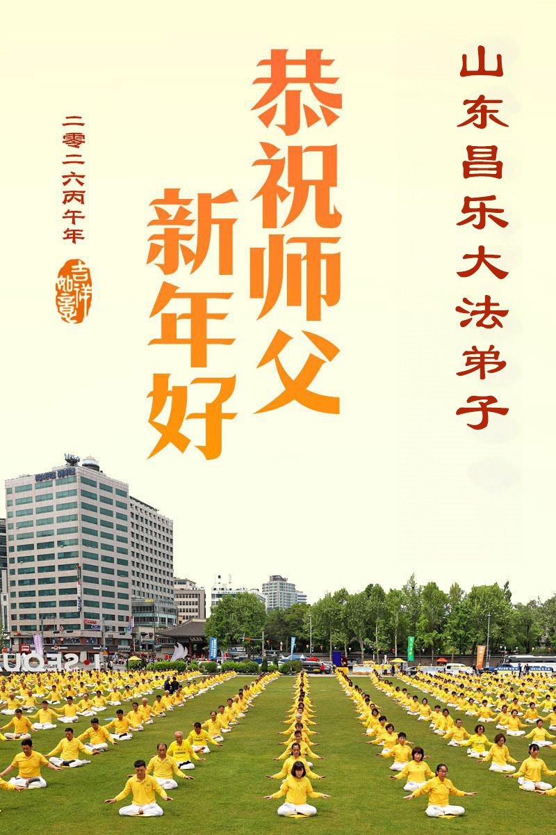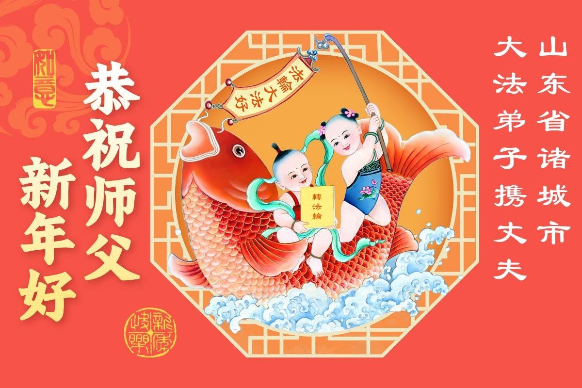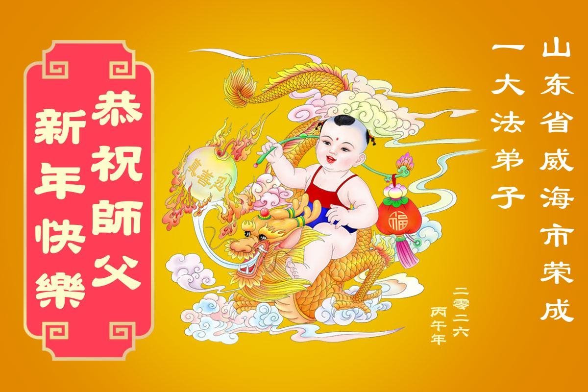 山東濟南歷下區大法弟子恭祝慈悲、偉大的師尊新年好!