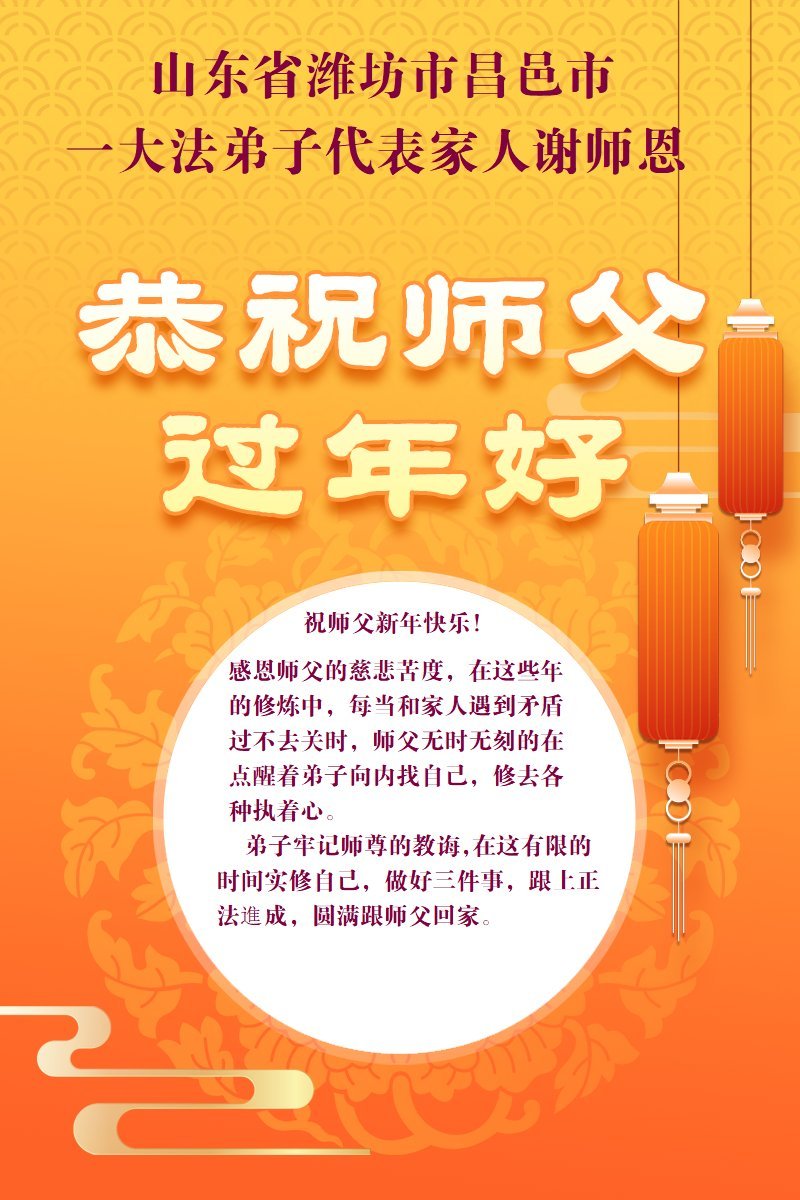 青島市萊西市一位大法弟子給師父拜年!