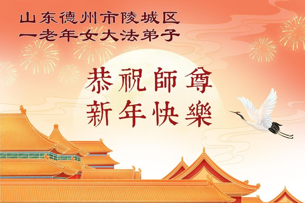 山東省德州市陵城區一老年女大法弟子恭祝師尊新年快樂!