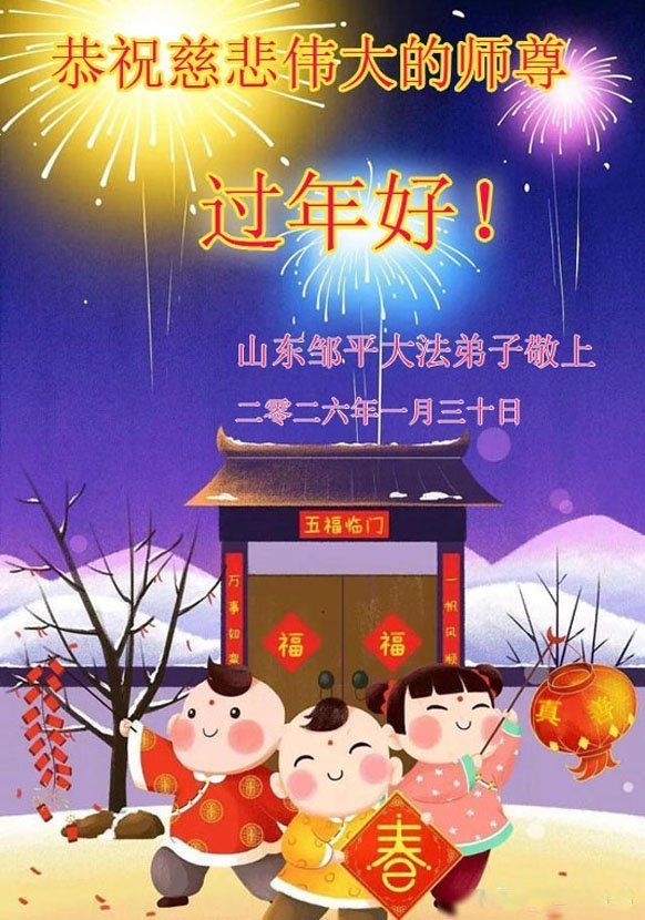 山東大法弟子五人學法小組大法弟子恭祝師父過年好!