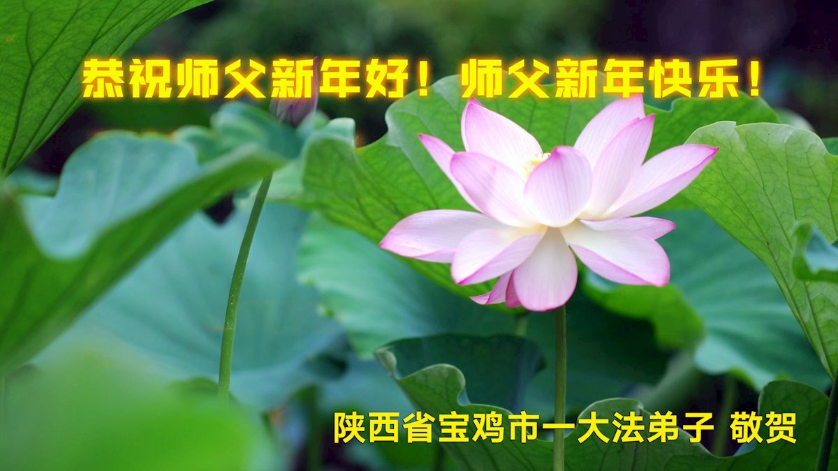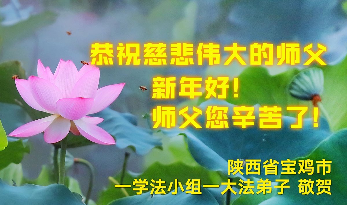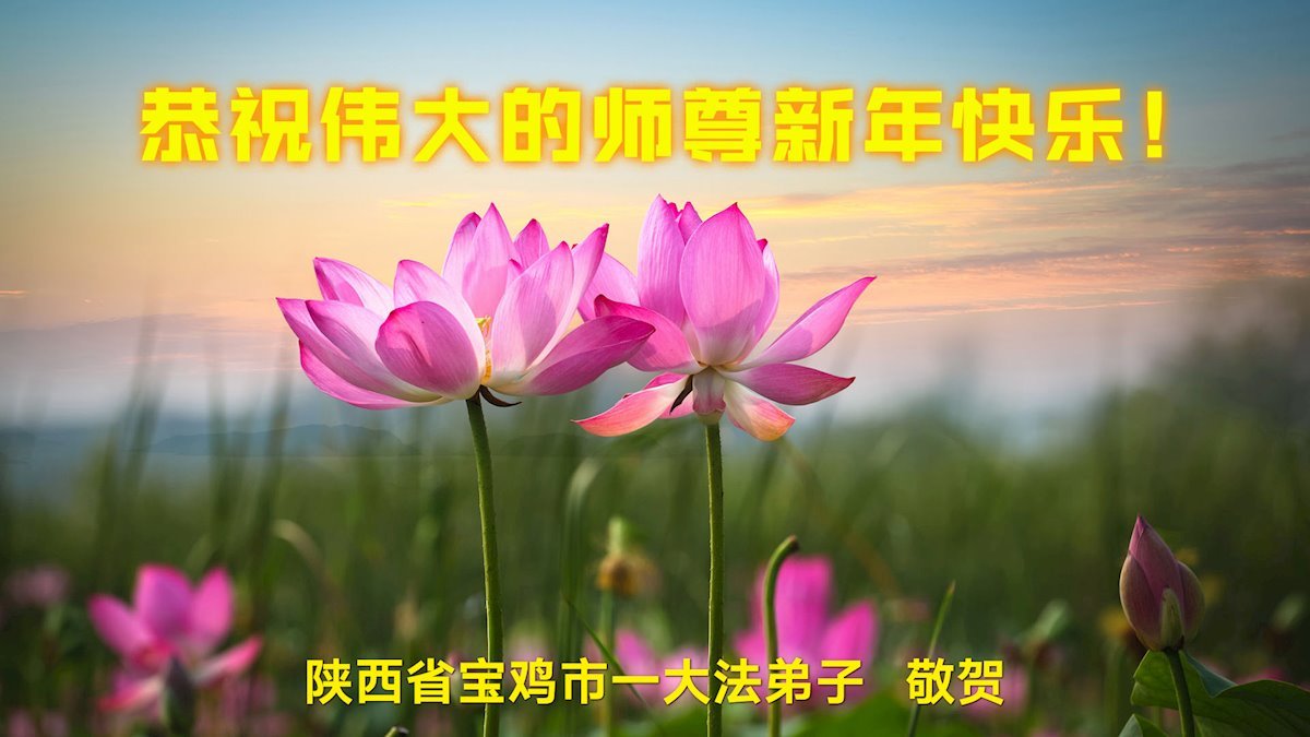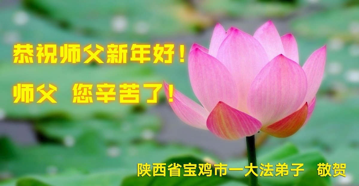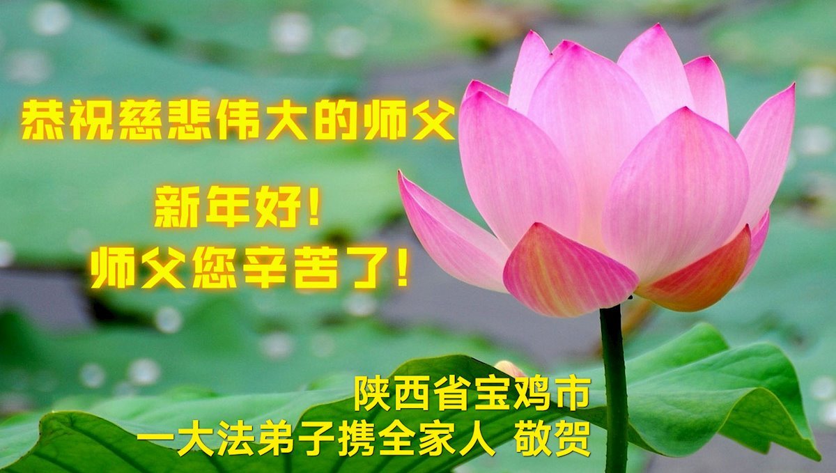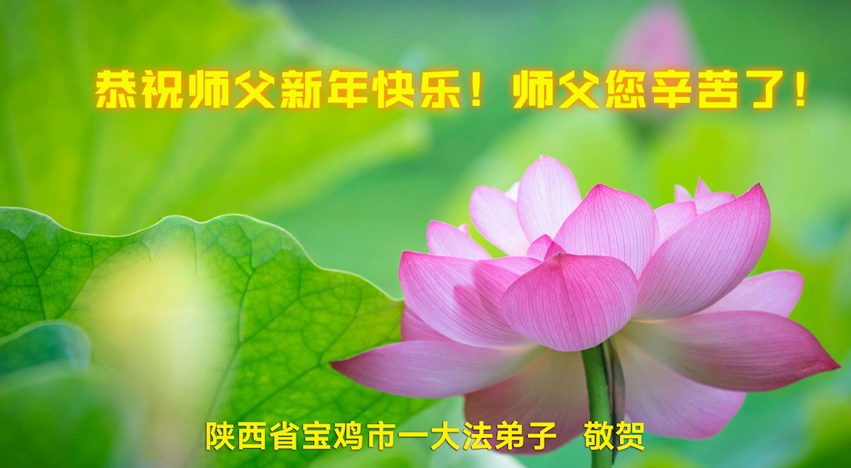新年來臨之際,恭祝師父新年好!師父您辛苦了!慈悲的師父把宇宙大法真善忍洒遍每一個角落,用真善忍的法理洗淨弟子,救度被謊言毒害的眾生,兌現弟子下世時的誓約。弟子只有勇猛精進,回報師父的慈悲苦度,緊跟師父回家園。