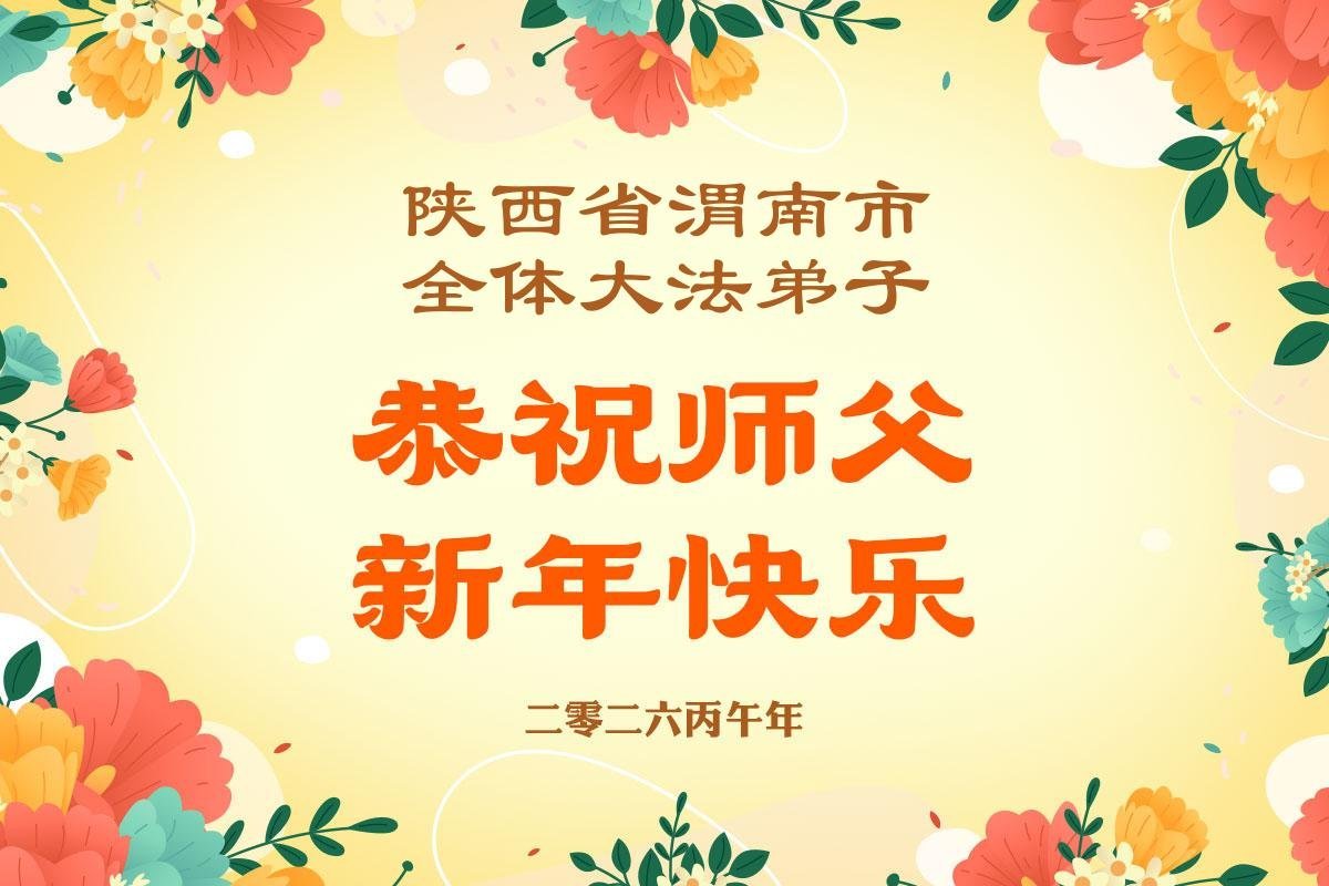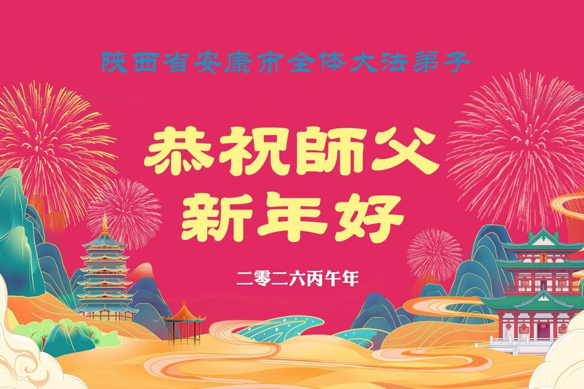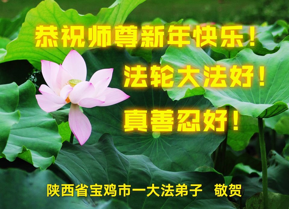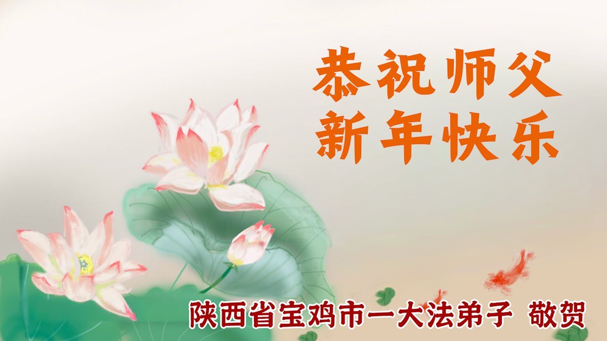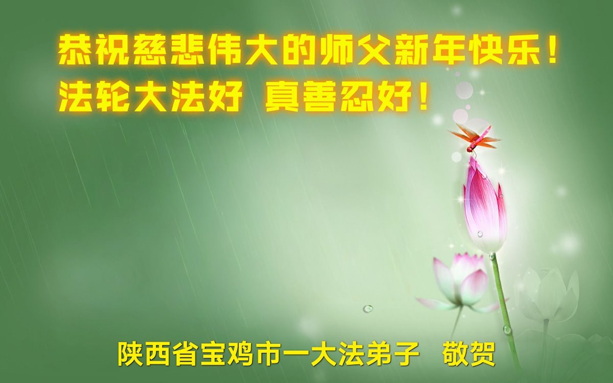 新年來臨之際,恭祝師父新年好!師父您辛苦了!慈悲的師父把宇宙大法真善忍洒遍每一個角落,用真善忍的法理洗淨弟子,救度被謊言毒害的眾生,兌現弟子下世時的誓約。弟子只有勇猛精進,回報師父的慈悲苦度,緊跟師父回家園。
