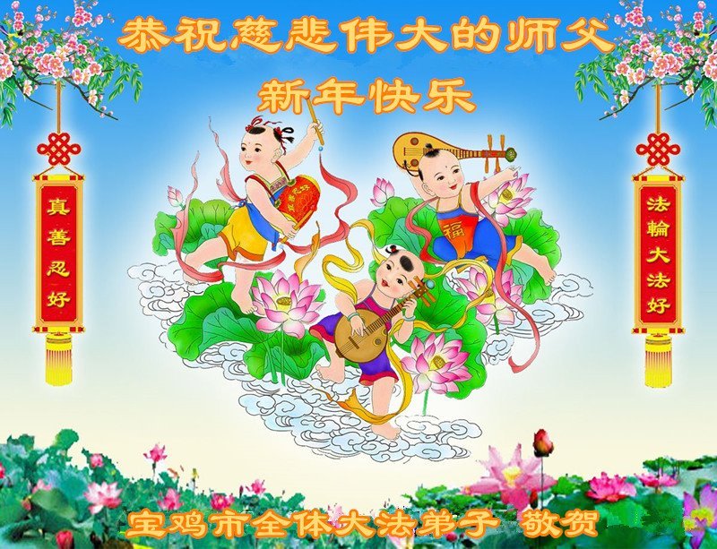 慈悲偉大的師父您好,在新年來臨之際,恭祝師尊新年快樂!我們只有精進修煉,才能回報師父的恩典。我們盼望師父早日回國,共度新年佳節!