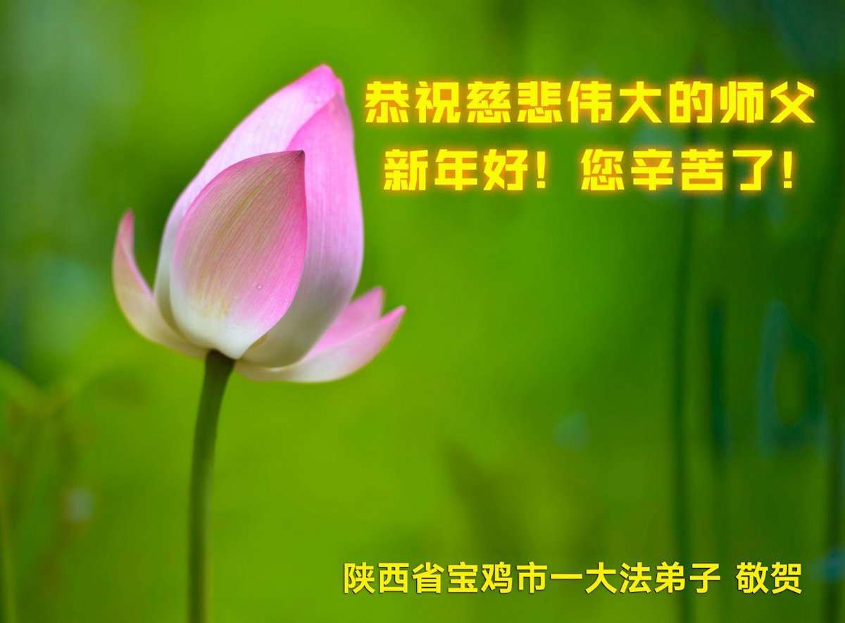 恭祝慈悲偉大的師尊新年好!感恩師尊的慈悲苦度,師尊您辛苦了!大法弟子是人類的希望,我們的責任重大,唯有修好自己才能完成自己應該做的事。在最後的時期,我要抓緊時間精進實修,走正修煉之路,做一個師父的真修弟子。