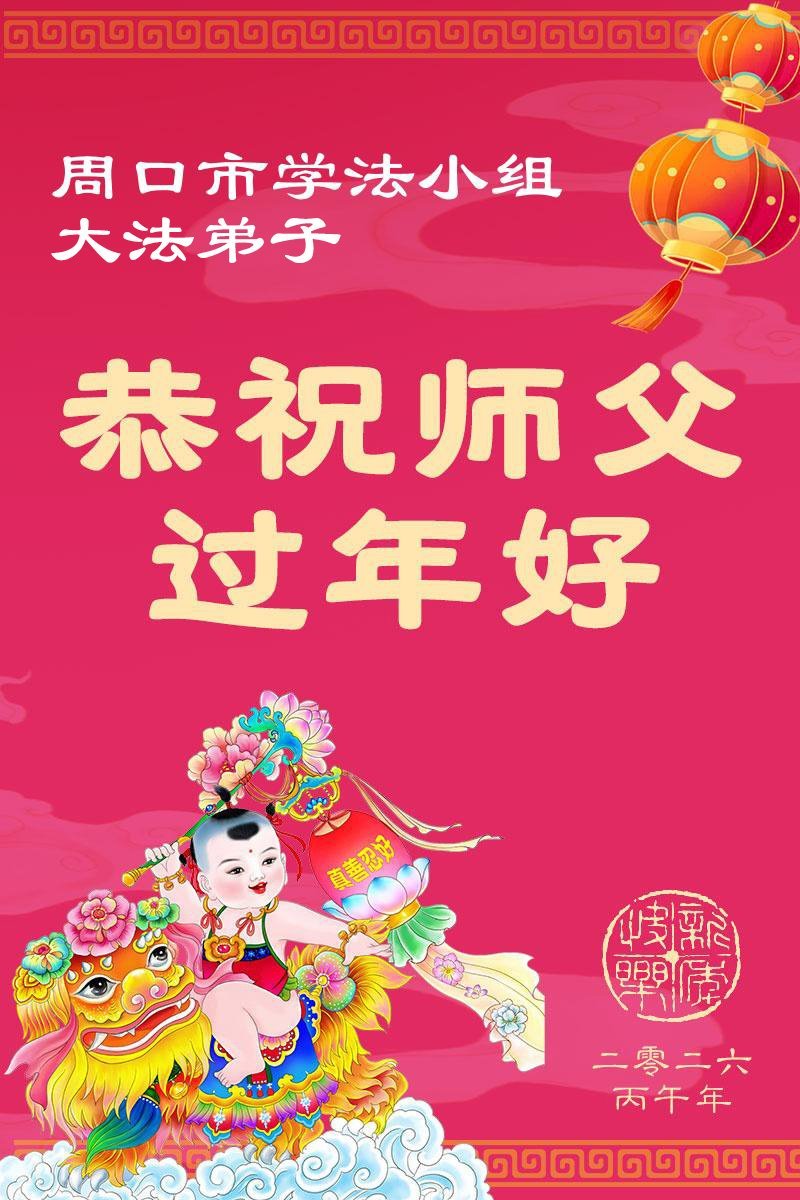 河南省周口市區學法小組老年大法弟子恭祝師父新年快樂!