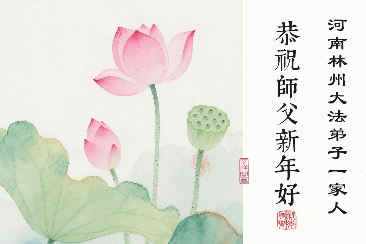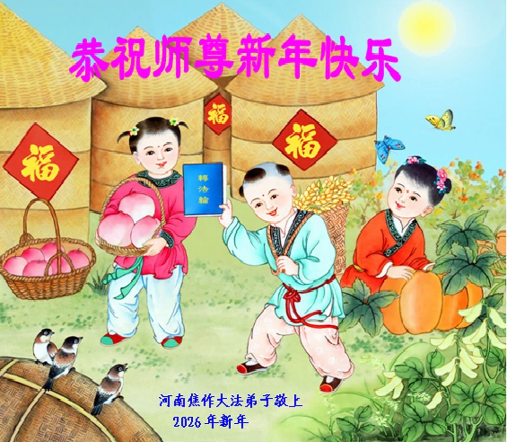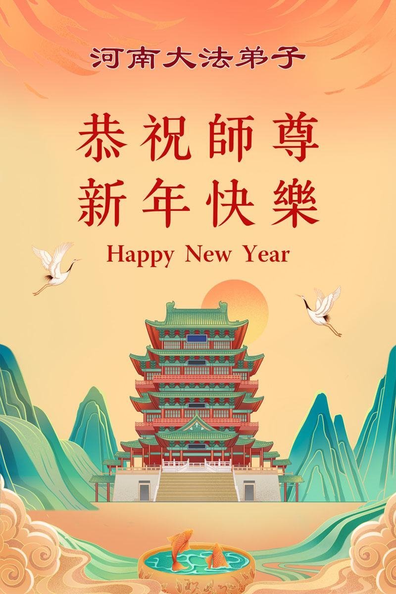 河南大法弟子恭祝慈悲偉大的師尊新年快樂!