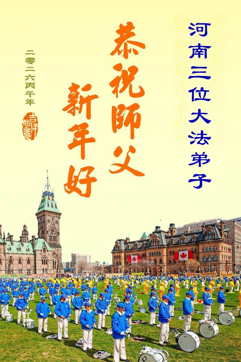 河南省三名大法弟子恭祝師父新年好!新年快樂!