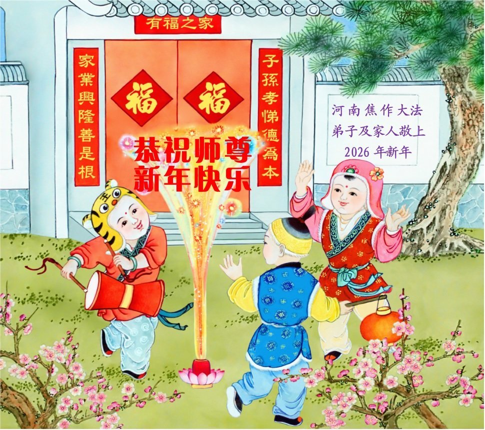 恭祝師父新年快樂!傾盡人間語言,道不盡慈悲偉大師尊對無量天體大穹中無量眾生的無量慈悲救度!在這二零二六年新年伊始之際,弟子及全家老小深深的向慈悲偉大的師尊道一聲:師尊您辛苦了!千言萬語、萬語千言也道不盡對師尊的無限感恩!在新的一年裏,弟子唯有精進、再精進,做好三件事,緊跟師尊正法進程,跟師尊回到自己的家園!