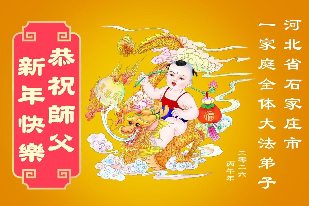 河北省石家莊一大法弟子及家人恭祝師父新年好!