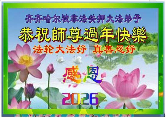 黑龍江省齊齊哈爾市被非法關押的全體大法弟子恭祝偉大師父過年好!