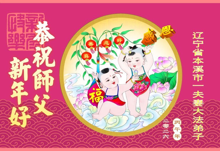 遼寧省本溪市一夫妻大法弟子恭祝師父新年好!
