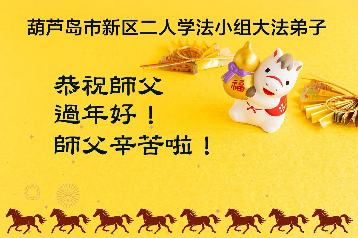 遼寧省葫蘆島市新區二人學法小組大法弟子給師父拜年!