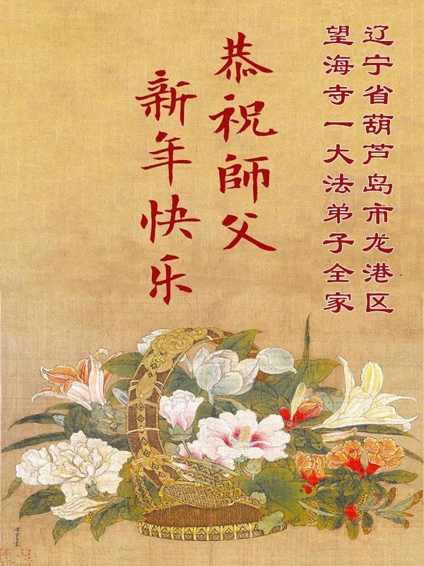 遼寧省葫蘆島市龍港區望海寺一大法弟子全家恭祝師父新年快樂!