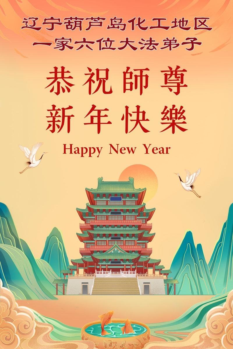 遼寧省葫蘆島市化工地區一家六位大法弟子恭祝慈悲偉大的師尊新年快樂!