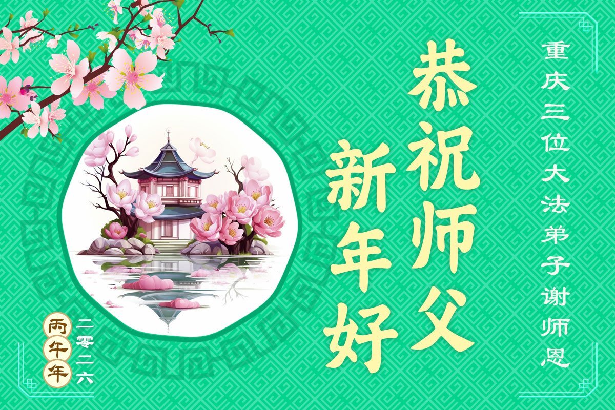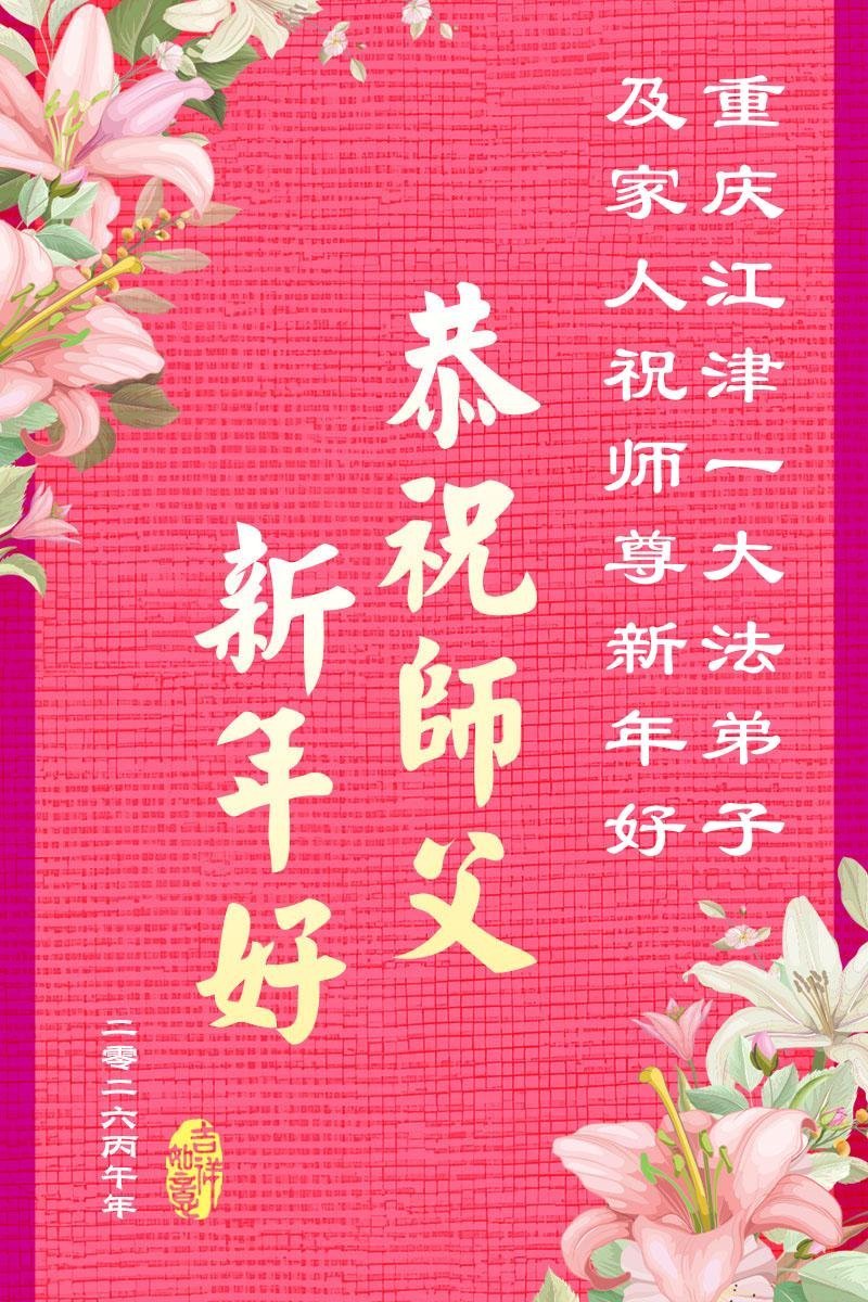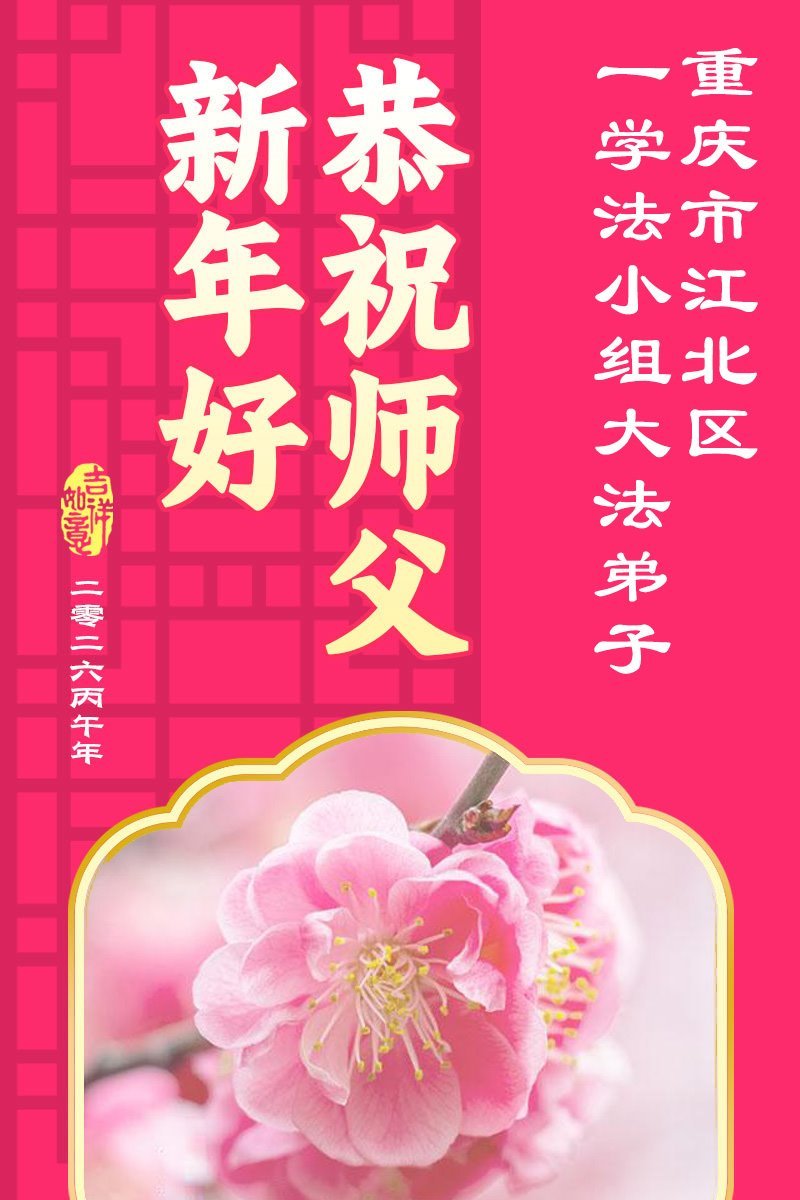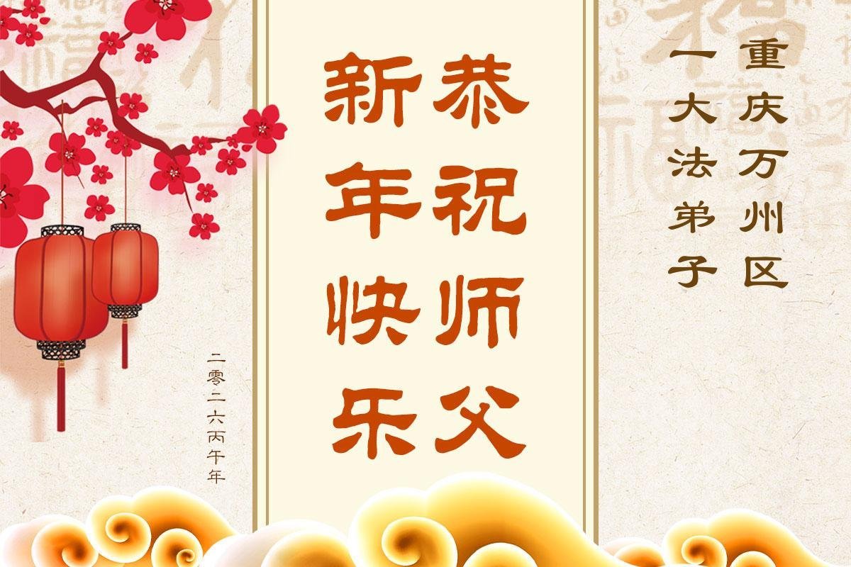 師父您好!師父您辛苦了!在這除舊迎新之際,我們四方學法小組的全體大法弟子恭祝師父過年快樂!給師父拜年!在師父用最大的承受為我們換來的時間,是為了救度更多的眾生,是為了我們大法弟子都能修成,我們一定不辜負師望,做好三件事,多救人,修好自己,維護法,證實法的神聖、偉大、美好!走好最後的路跟隨師父回家!