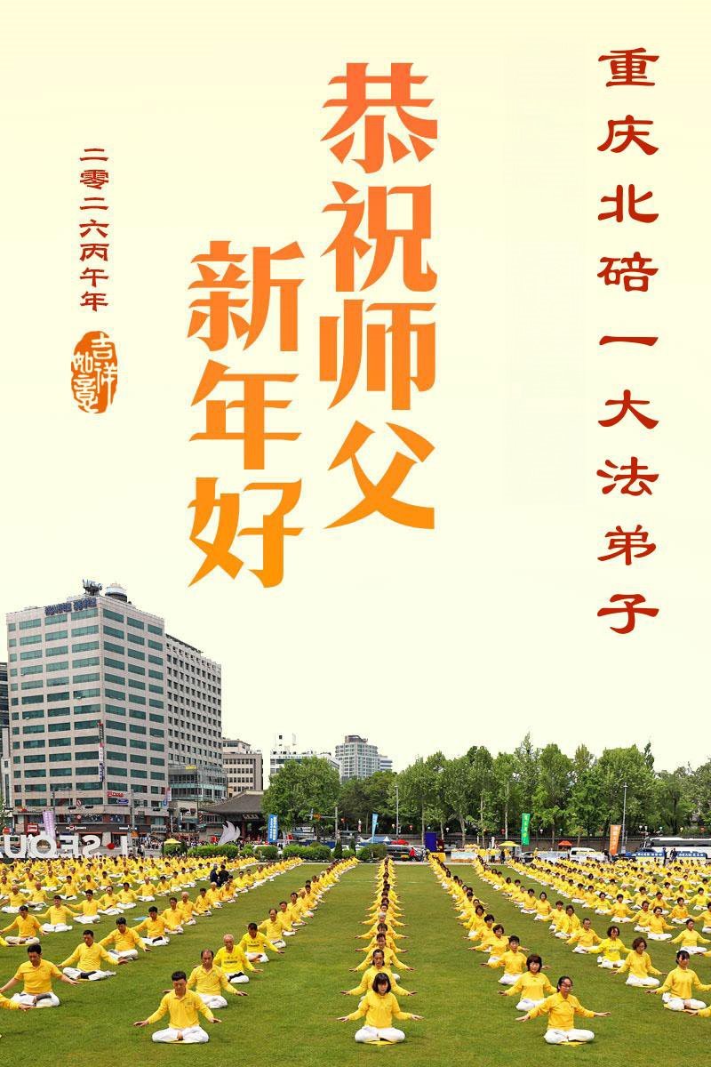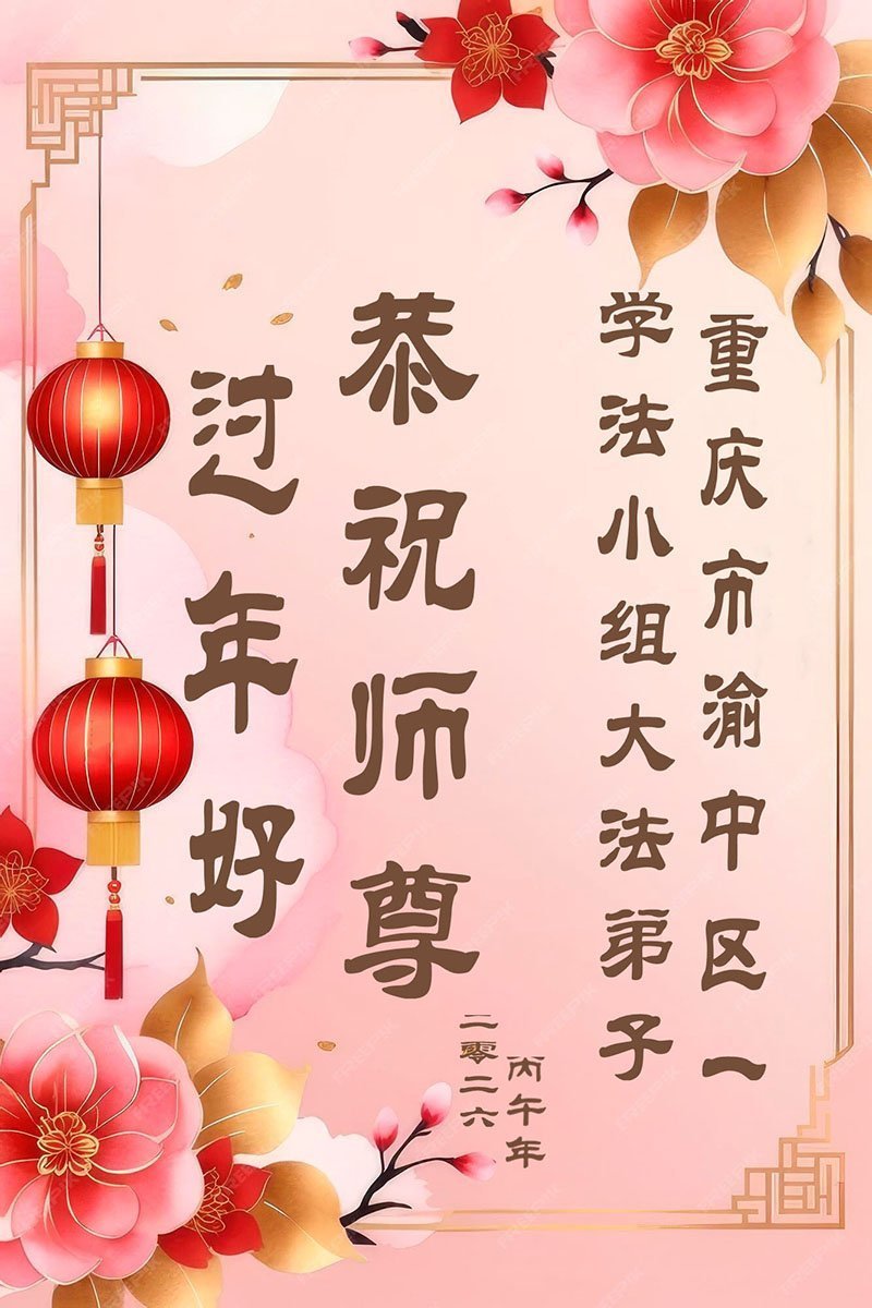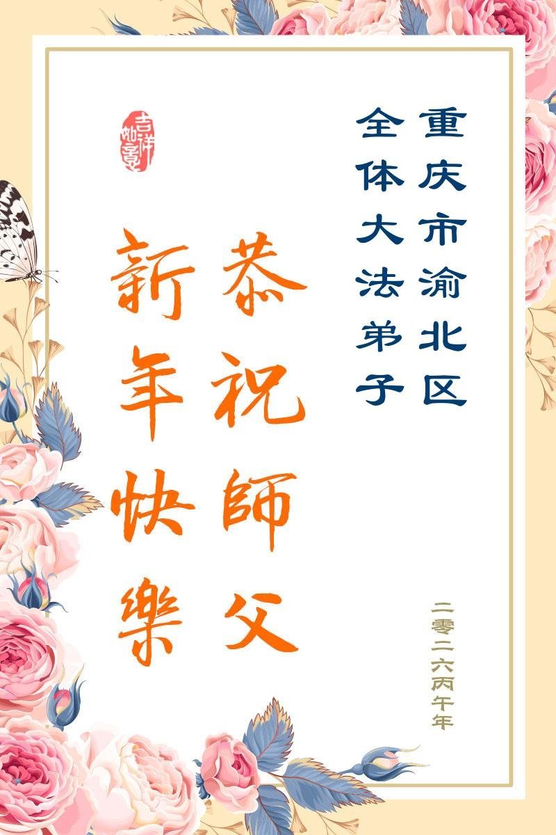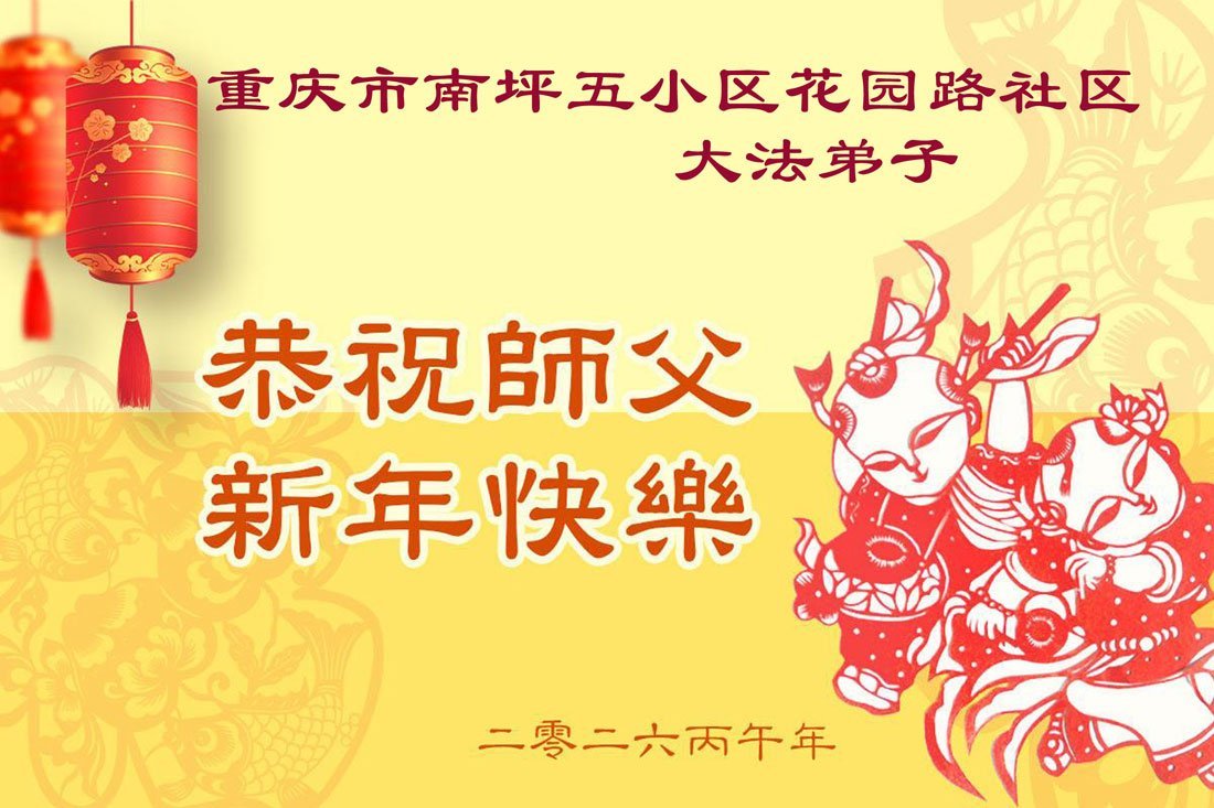 師父您好!師父您辛苦了!在這除舊迎新之際,我們四方學法小組的全體大法弟子恭祝師父過年快樂!給師父拜年!在師父用最大的承受為我們換來的時間,是為了救度更多的眾生,是為了我們大法弟子都能修成,我們一定不辜負師望,做好三件事,多救人,修好自己,維護法,證實法的神聖、偉大、美好!走好最後的路跟隨師父回家!