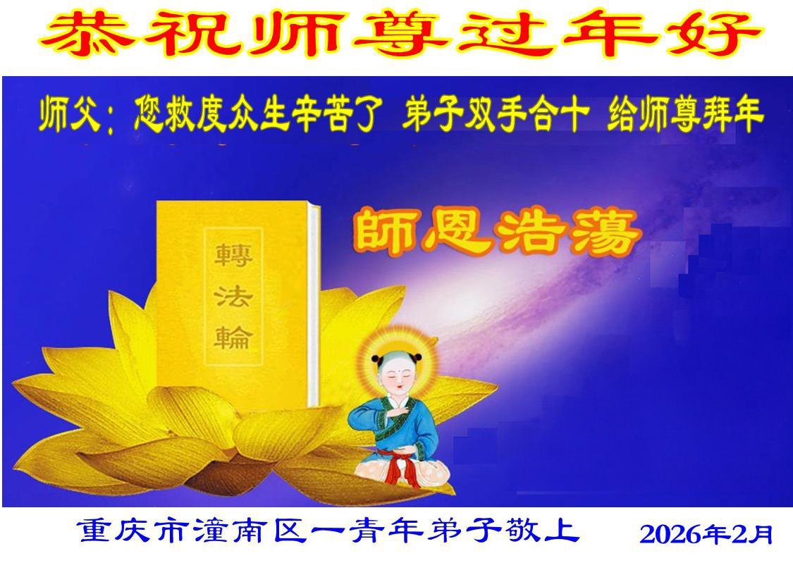 師父您好!您辛苦了!我們想念您!在二零二六年新年到來之際,我們感恩您的慈悲救度,感恩您給予智慧,淨化身體,我們雖然修得不好,但心一直在努力,我們要跟師父回家!法輪大法好!真善忍好!